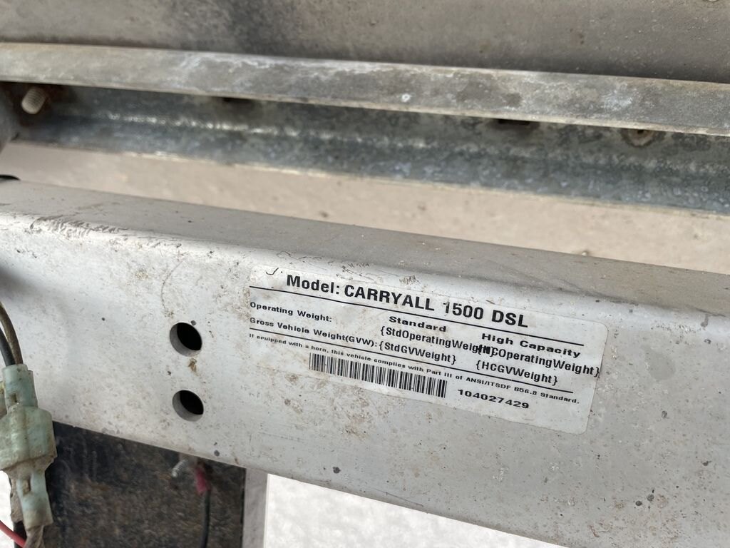 Engine: 20HP diesel—strong and fuel-efficient Hours: 1,344 Manual Dump Box: Easily manage heavy loads Comfort: Includes roof and front windshield for extra protection Condition: Excellent shape and well-maintained This Carryall 1500 is ideal for tough jobs and outdoor environments. Act fast, because a unit in this condition won’t last long!