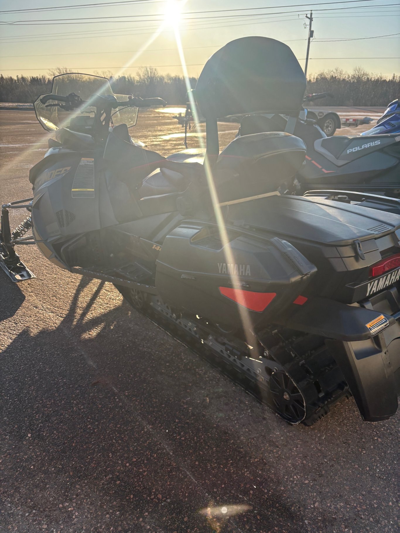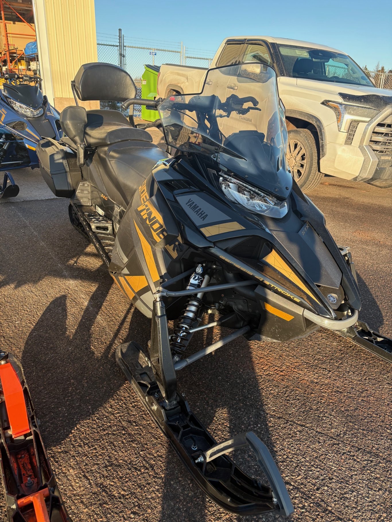 Sidewinder S-TX GT produces the most power ever offered in a Yamaha 2-up machine. It absolutely blurs the line between a sporty trail touring package and all out lake-racer. Powered by the mighty Yamaha Genesis 998 turbo, this fully featured flag-ship cruiser stands above all other passenger capable snowmobiles. Extended fuel range, storage capacity for two, plus all the comfort and warmth you'd expect from a luxury sled are a given. Rocket past your buddy's racy big twin with turbo-charged authority.