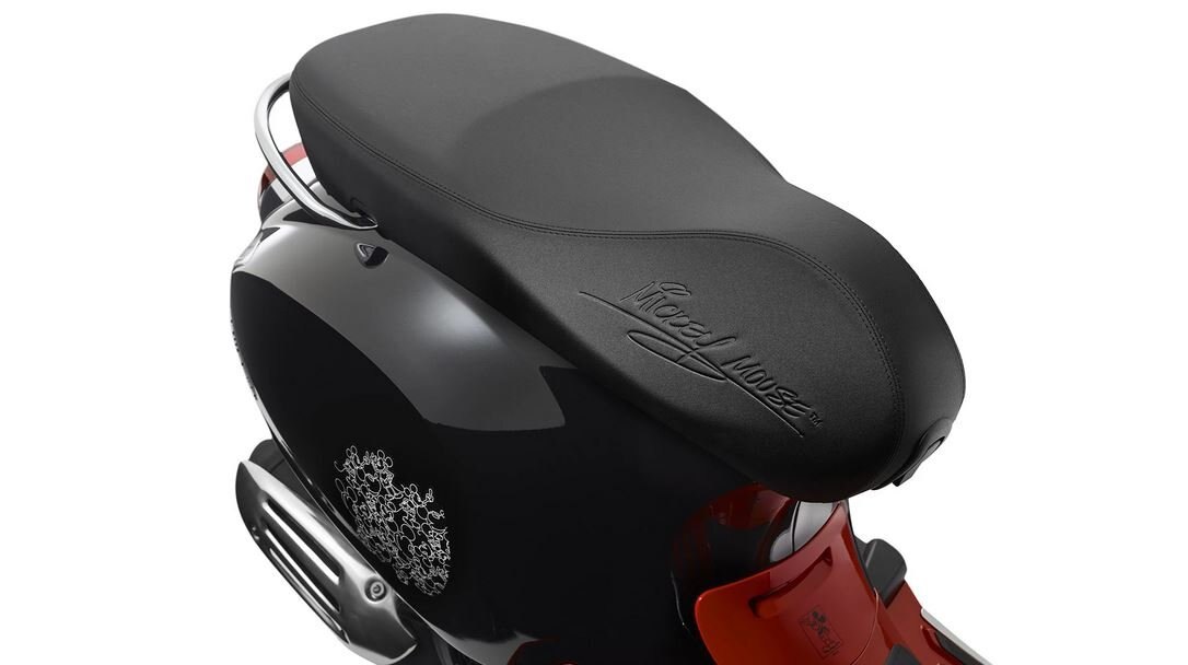 Just beneath the seat of the Disney Mickey Mouse Edition By Vespa you’ll find the distinctive Disney mark confirming the authenticity of this special edition.