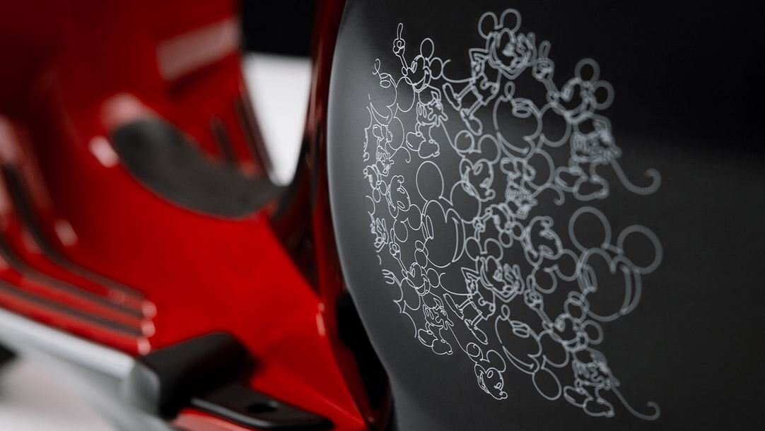 A unique, original design for an edition that celebrates freedom and lightheartedness. Prepare to fall for the charms of the symbolic elements that personify the Disney character, such as the white-on-black graphic pattern depicting Mickey Mouse’s silhouette on the shield and side, and his signature on the seat and front.