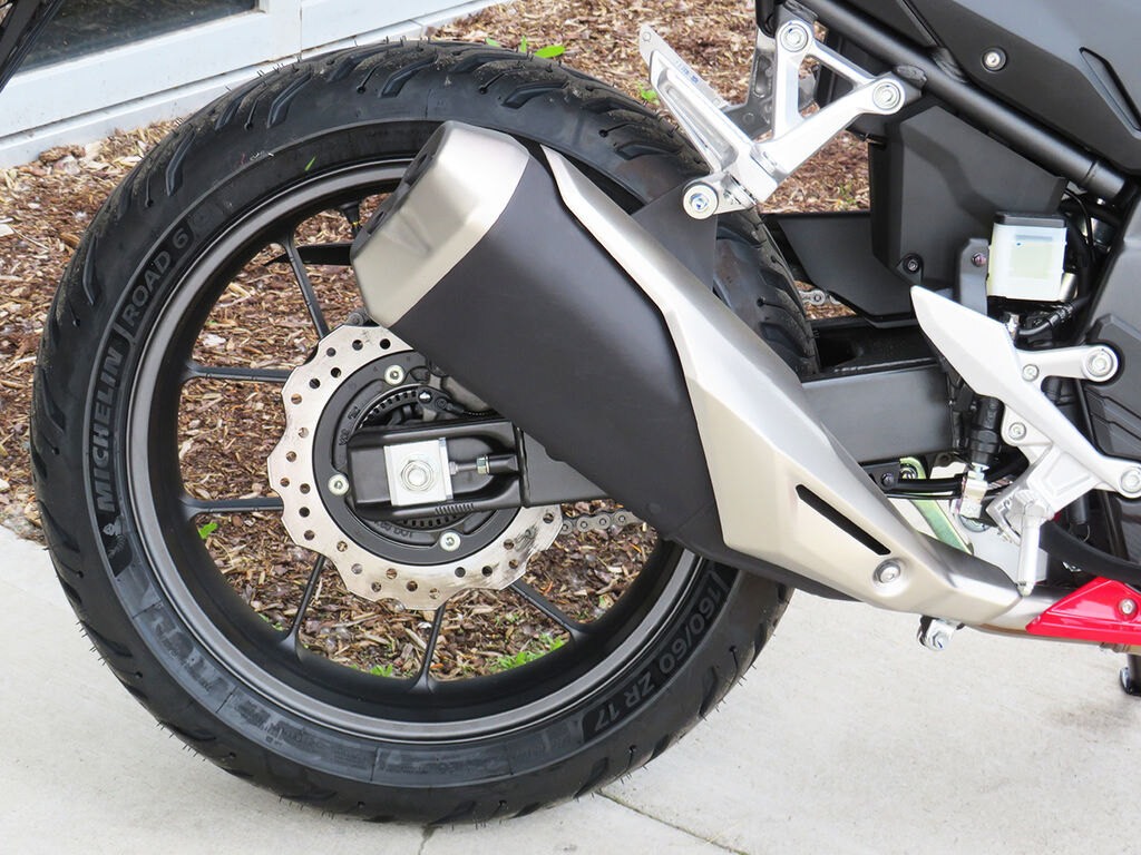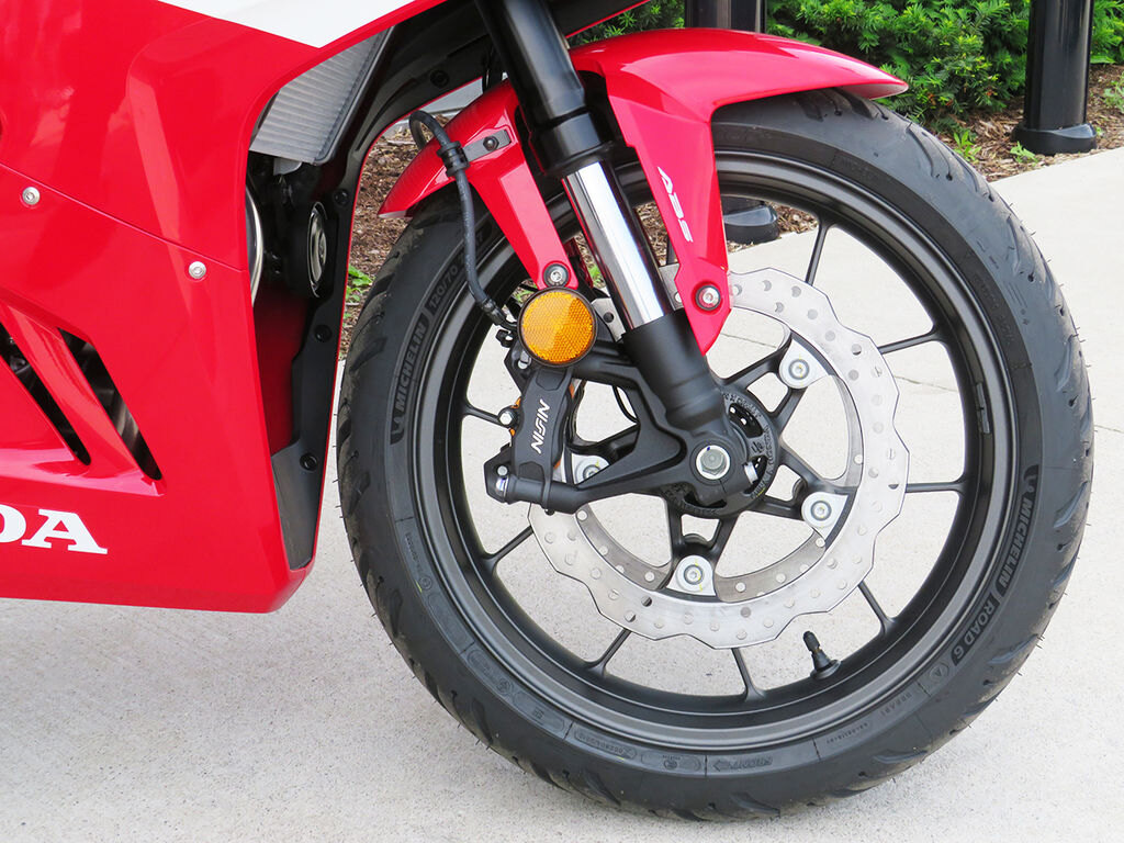 The front fork features Showa 41mm Separate Function Fork Big Piston (SFF-BP) USD forks -- the same found on the CBR650R. Additionally, the Pro-Link® rear suspension boasts a single-tube shock absorber (as found on larger capacity sportbikes) with five-stage spring preload adjustment.
