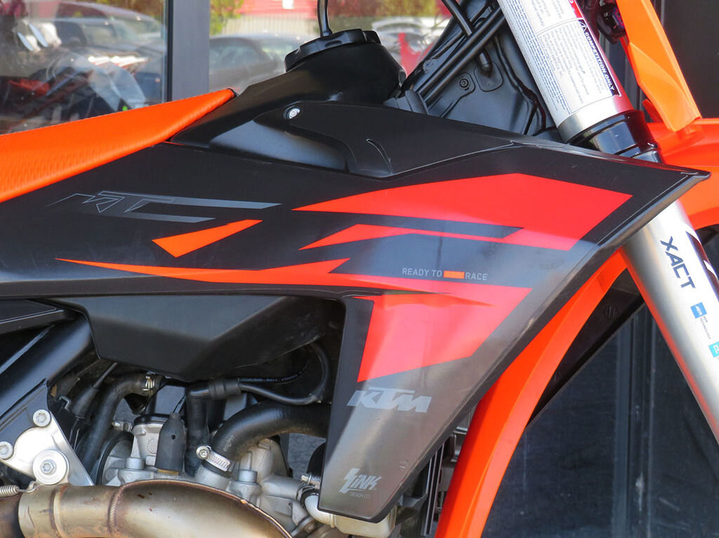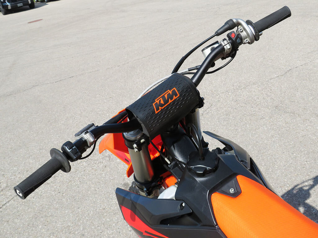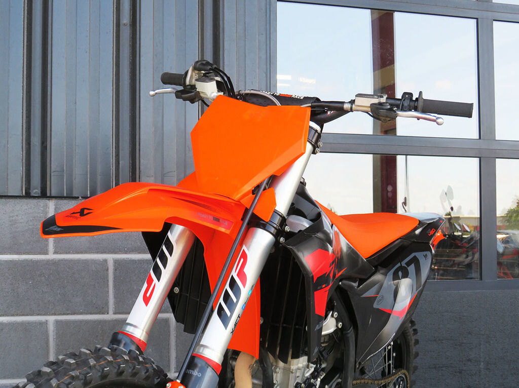 Get dialed in! The 2023 KTM SX range boasts totally tool-free suspension setup at both ends. Thanks to an all-new shock absorber design featuring hand-adjustable dual compression control, it allows riders to adjust high- and low-speed settings in a matter of seconds. On the front end, the forks are also easily adjusted thanks to a single air pressure preload valve, as well as through easy access click adjusters for compression and rebound. We'll even throw the air pump in as standard.