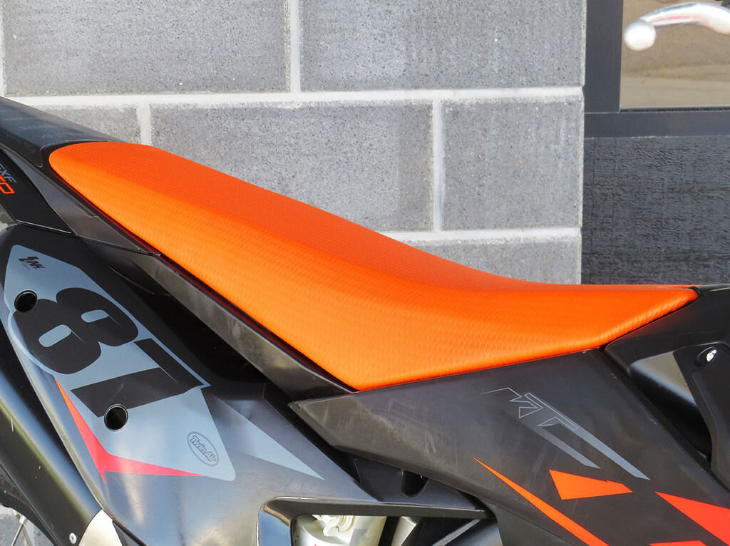 The 2023 KTM SX and SX-F range feature an entirely new and improved rider triangle, providing improved knee contact - especially when standing on the pegs - with improved gripping surfaces all around. New plastics work to expel mud buildup in wet, muddy conditions, with a new, flatter seat profile and high grip seat cover providing exceptional rider movement and control. The polyamide reinforced aluminum subframe further enhances rider feel and feedback.