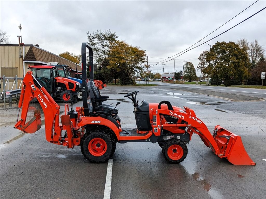 23hp diesel, 2-range HST, 4WD, power steering, PTO, R14 hybrid tires, loader w/ 48" quick-attach bucket, backhoe, 80 hours, factory warranty until August 2029, financing available from 3.99%, price is plus tax. Berg Equipment 42134 Hwy 3, Wainfleet, ON (Tag A10390)