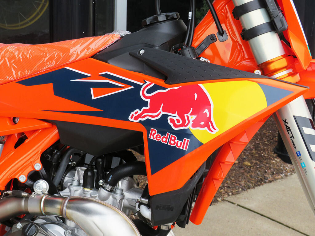 The KTM 450 SX-F FACTORY EDITION raises the bar with a factory-level suspension upgrade that redefines READY TO RACE performance. Fitted as standard with the WP XACT PRO 7548 front fork and WP XACT PRO 8950 rear shock, this exclusive setup delivers unmatched precision, comfort, and control. The 48 mm WP XACT PRO 7548 fork features a closed-cartridge design with a unique valve system and friction-optimized internals, offering pinpoint response, rock-solid bottoming resistance, and consistent damping lap after lap. On the rear, the WP XACT PRO 8950 shock incorporates Supertrax technology and a linked damping system to maximize traction, smooth out harsh impacts, and boost rider confidence in every section of the track.