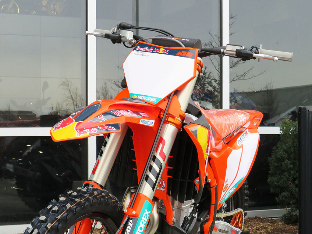 The 2026 KTM 450 SX-F FACTORY EDITION now features the class-leading WP XACT PRO 7548 fork and WP XACT PRO 8950 rear shock. This means you'll be lining up at the setting gate with the ultimate set-up, reduced weight, pristine weight distribution and acute responsiveness.