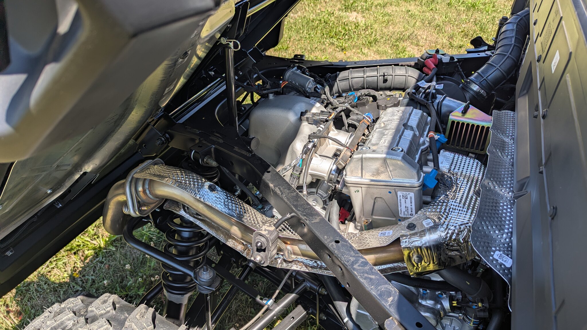 -- Engine Type: Longitudinal Twin Displacement: 60.9 cu. in. (999 cc) Bore and Stroke: Bore: 3.66 in. (93 mm); Stroke: 2.89 in. (73.6 mm) Cooling: Liquid Compression Ratio: 10.8:1 Fuel System: Gas Front Suspension: Double A-Arm Front Brakes: Hydraulic Disc Front Tire: Polaris PXT 2.0: 26 x 9-12 Rear Suspension: Independent Double A-Arm Rear Brakes: Hydraulic Disc Rear Tire: Polaris PXT 2.0: 26 x 11-12 Dry Weight: 1853 lb. (841 kg.) Wheelbase: 113 in. (2870 mm) Front Travel: 10 in. (254 mm) Rear Travel: 10 in. (254 mm) Ground Clearance: 12.5 in. (318 mm) Fuel Capacity: 11.4 gal. (43 L) Box Capacity: 1000 lbs. (453.6 kg.) Towing Capacity: 2500 lb. (1134 kg.) Drive System: Continuously Variable (CVT) Speedometer: Standard Tachometer: Standard Odometer: Standard
