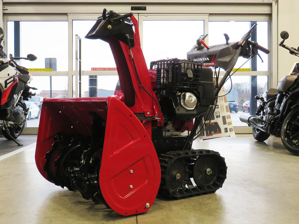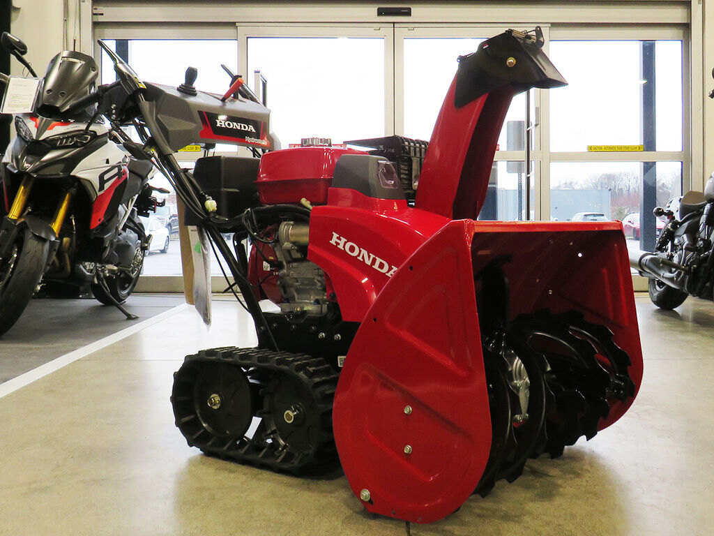 Includes all fees - tax is extra. Model year indicates that this is the most current generation - does not reflect year of manufacture. Please contact us to make an appointment so we can ensure the unit is onsite for viewing. The full-featured, dual stage, track drive HSS1332ACTD is powered by the reliable, easy starting Honda GX390T2 commercial grade OHV (overhead valve) engine, clears a path 81.0 cm (31.9 in) wide and 55.0 cm (21.7 in) high, and provides snow discharge up to an amazing 75 metric tons (83 tons) per hour, at a distance of up to 17 m (56 ft). And it provides the ultimate in snow clearing convenience: Turn the key and go with 12 VDC on-board battery start, and control the height and direction of snow discharge with the touch of a finger using the convenient remote electric two-step chute with "Joystick" control. Should unwanted debris cause the auger to lock during operation, a Shear bolt Guard System alerts the operator and automatically stops the engine, preventing mechanical damage and unnecessary down-time. A standard hour meter monitors usage and helps to ensure that proper maintenance is carried out in order to keep the HSS1332ACTD running smoothly and at peak performance. The variable speed hydrostatic transmission features a single lever for quick switching between forward and reverse, and for accurate adjustment of ground speed without affecting auger rotation speed, while the steering assist drive system improves manoeuvrability with or without engine running with the new fingertip trigger steering control allowing precise turns for unmatched on-the-fly steering. The hydraulic-assist auger height adjustment control allows on-the-fly adjustment of auger height for optimum performance in varying snow conditions. It comes with a 3 year residential/commercial warranty, it's certified to meet or exceed EPA emissions guidelines, it's highly operator-friendly, and the HSS1332ACTD has the Honda power and technology to clear the heaviest snowfalls and the largest areas with ease.