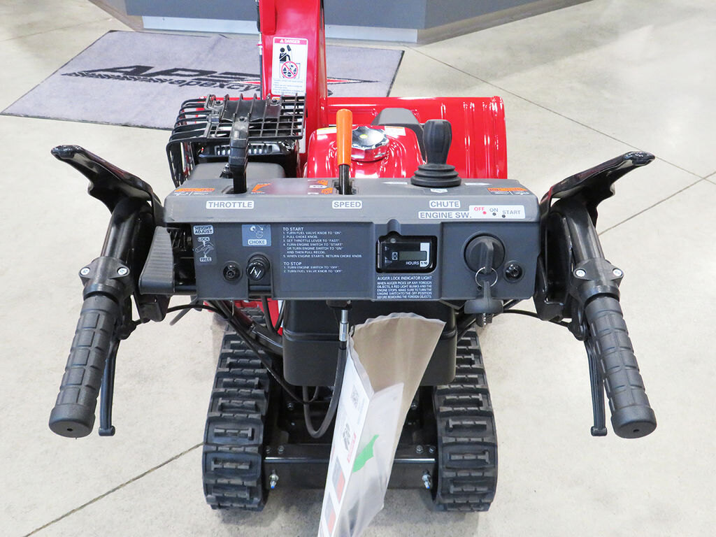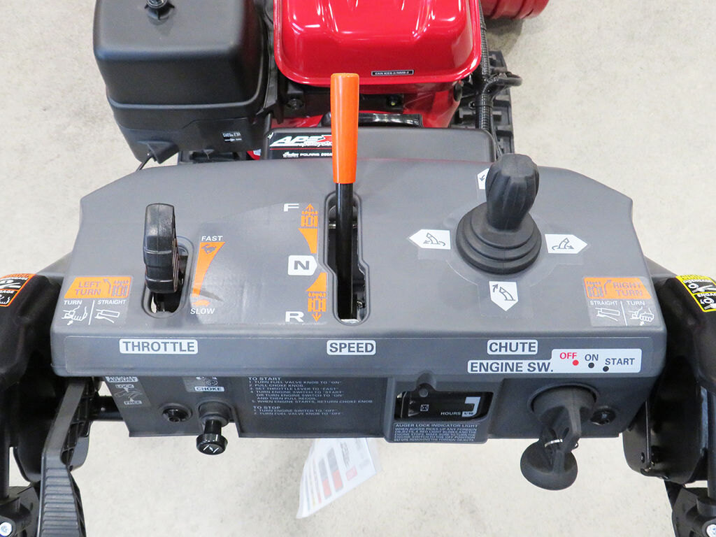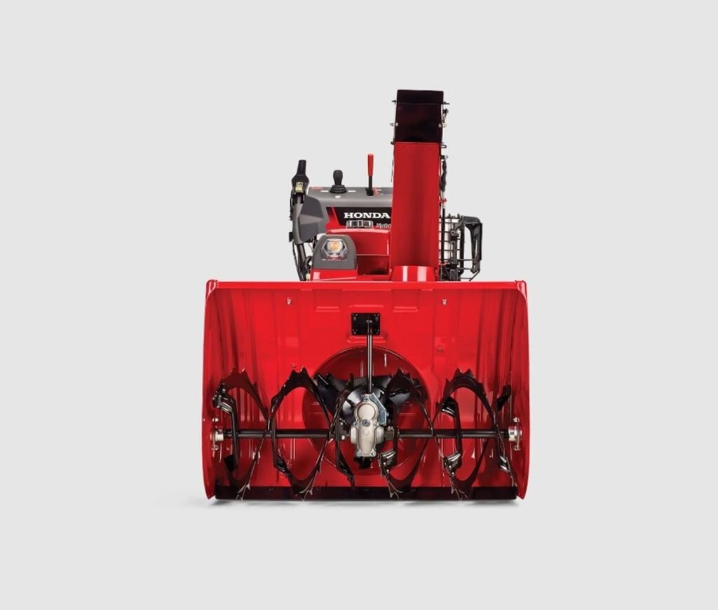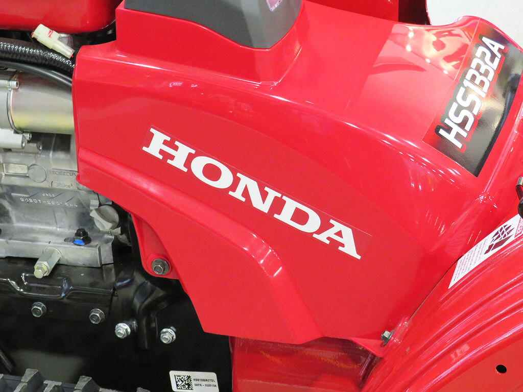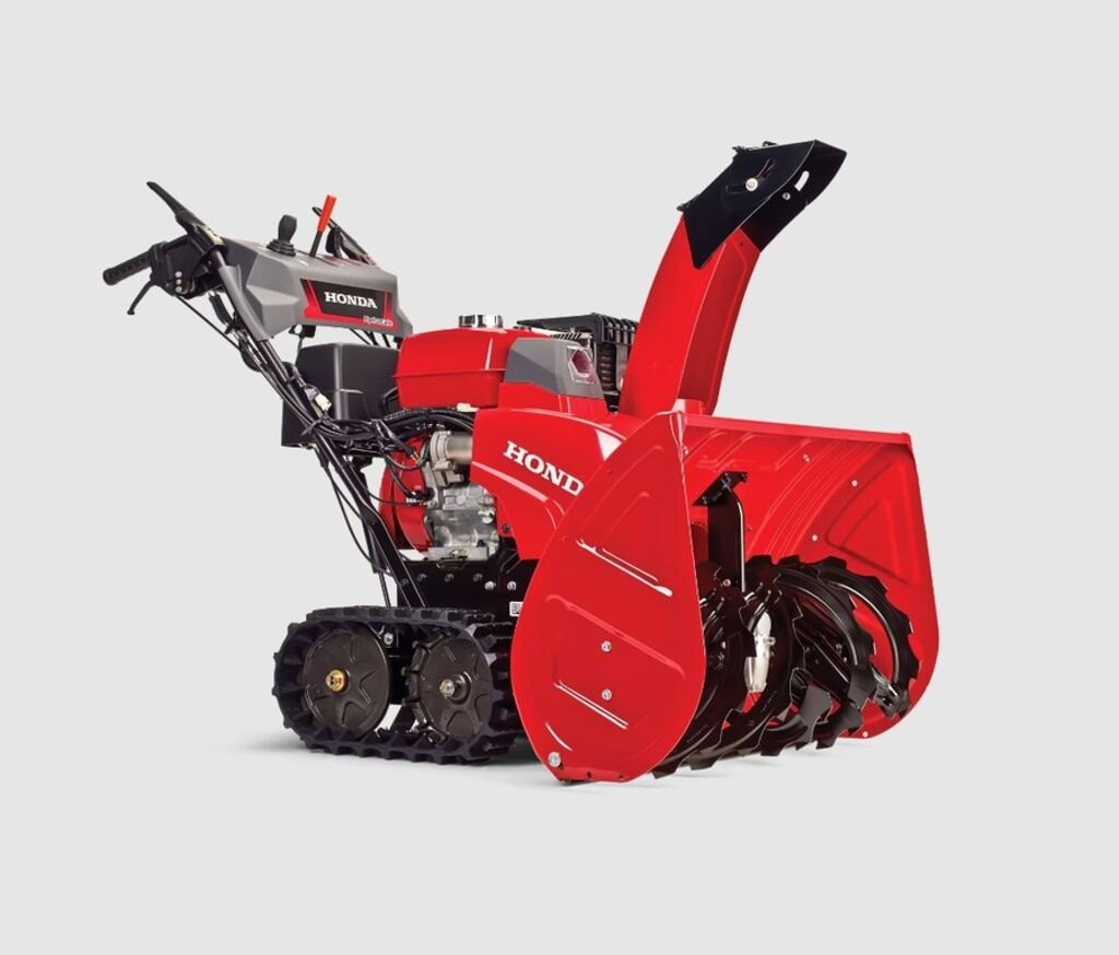 The full-featured, dual stage, track drive HSS1332ACTD is powered by the reliable, easy starting Honda GX390T2 commercial grade OHV (overhead valve) engine, clears a path 81.0 cm (31.9 in) wide and 55.0 cm (21.7 in) high, and provides snow discharge up to an amazing 75 metric tons (83 tons) per hour, at a distance of up to 17 m (56 ft). And it provides the ultimate in snow clearing convenience: Turn the key and go with 12 VDC on-board battery start, and control the height and direction of snow discharge with the touch of a finger using the convenient remote electric two-step chute with "Joystick" control. Should unwanted debris cause the auger to lock during operation, a Shear bolt Guard System alerts the operator and automatically stops the engine, preventing mechanical damage and unnecessary down-time. A standard hour meter monitors usage and helps to ensure that proper maintenance is carried out in order to keep the HSS1332ACTD running smoothly and at peak performance. The variable speed hydrostatic transmission features a single lever for quick switching between forward and reverse, and for accurate adjustment of ground speed without affecting auger rotation speed, while the steering assist drive system improves manoeuvrability with or without engine running with the new fingertip trigger steering control allowing precise turns for unmatched on-the-fly steering. The hydraulic-assist auger height adjustment control allows on-the-fly adjustment of auger height for optimum performance in varying snow conditions. It comes with a 3 year residential/commercial warranty, it's certified to meet or exceed EPA emissions guidelines, it's highly operator-friendly, and the HSS1332ACTD has the Honda power and technology to clear the heaviest snowfalls and the largest areas with ease. Features May Include: