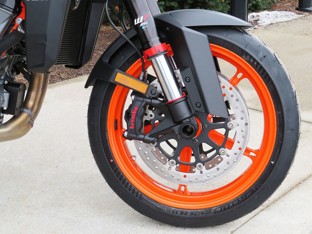 Remaining at 947 cc, the R version's parallel twin LC8c motor produces additional horsepower and torque thanks to improved mapping to unleash its power from within, creating an adrenaline-pumping experience that comes courtesy of being the most compact twin in class. Based upon the KTM 990 DUKE platform already in the line-up, the results speak for themselves. Put simply, the best just got even better.