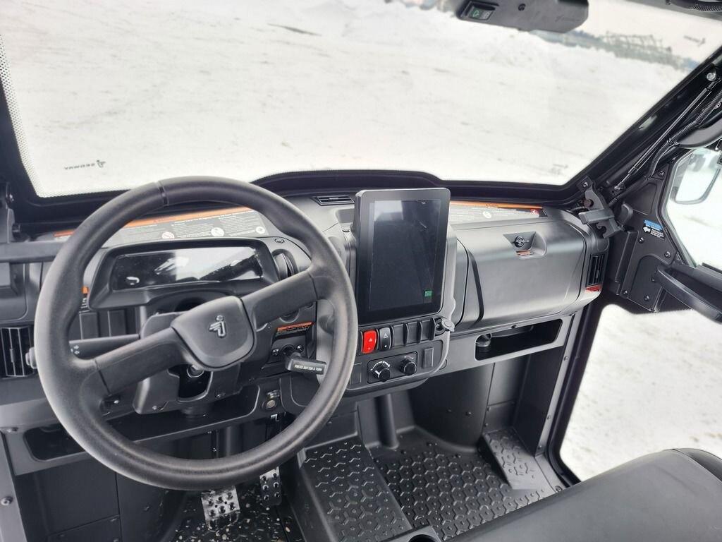 Interior & Comfort: -Seating for three with adjustable driver’s seat -Premium sewn seats with contoured support and Segway branding -Spacious cabin with practical storage -Fully enclosed cabin with heating and ventilation system -Polycarbonate doors with sliding windows for visibility and airflow -Half doors replaced with full polycarbonate enclosure