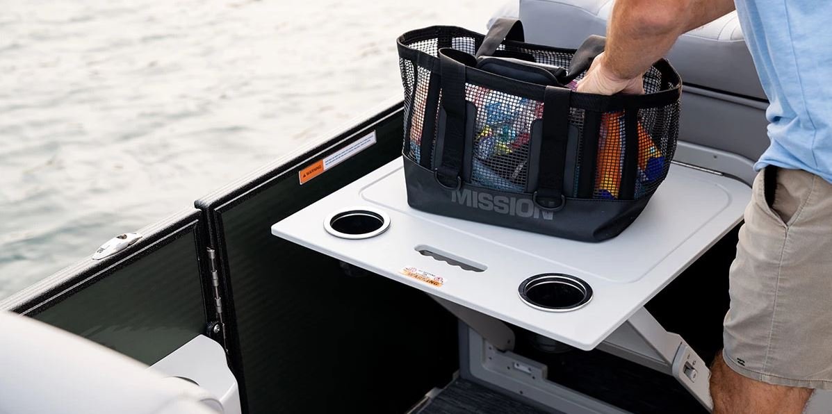 Experience the pinnacle of premium boating with the Caribbean Platinum. Combining timeless styling and premium performance, this tritoon boat offers an array of premium upgrades, features, and amenities designed to keep you fully immersed in the present. Upgrade your experience with our exclusive accessory package, featuring holders for your flag and GoPro. Delight in the elegance of the cladded arch with gas assist, while staying cool and protected under the power bimini for bow shade. Enjoy crystal-clear sound with the premium Klipsch audio system. The Caribbean Platinum ensures you and your family can create unforgettable memories, surrounded by unparalleled comfort, style, and performance.