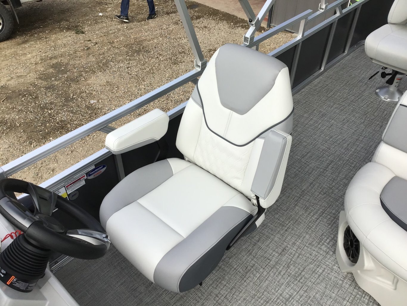 Yamaha Pre rig, Venture 85 Platinum Edition, Commander Mid Back Reclining Chair, Mooring Cover, Garmin 52CV, LED Smoked Chrome Docklights, Platinum Edition Special Badging, Sport Performance Package, Leon Silver Base 1 Vinyl, Leon Graphite Base 2, Vinyl Koolfab Charcoal Accent Vinyl, Black Canvas, 2 Sport Low Backs-Aft, Riptide Shadow Flooring ,Livewell In Place Of Sundeck ,Silver Seat Cladding And Charcoal Matte Walls.
