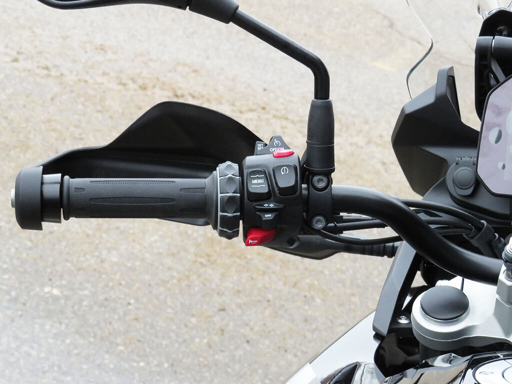 Optimum protection on difficult terrain. The high-quality Enduro hand protectors with metal brackets and new trim for the F 900 GS Trophy protect the manual controls and hands against mechanical impacts and falls.