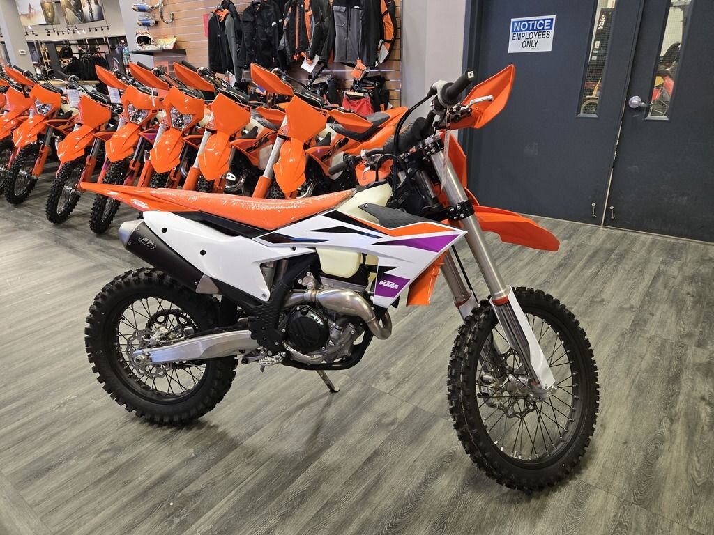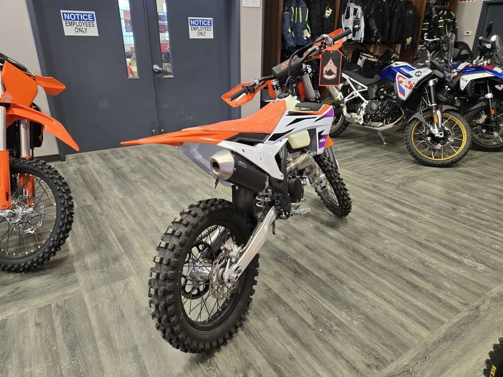 Weighing in at a lightweight 57.5 lb, this mid-weight powerhouse is the undisputed performance leader in the 250 cc 4-stroke class. Designed and tuned to best suit the performance and handling characteristics of the overall package, the 2024 KTM 250 XC-F offers incredible mass centralization and anti-squat behavior of the chassis that are second to none.
