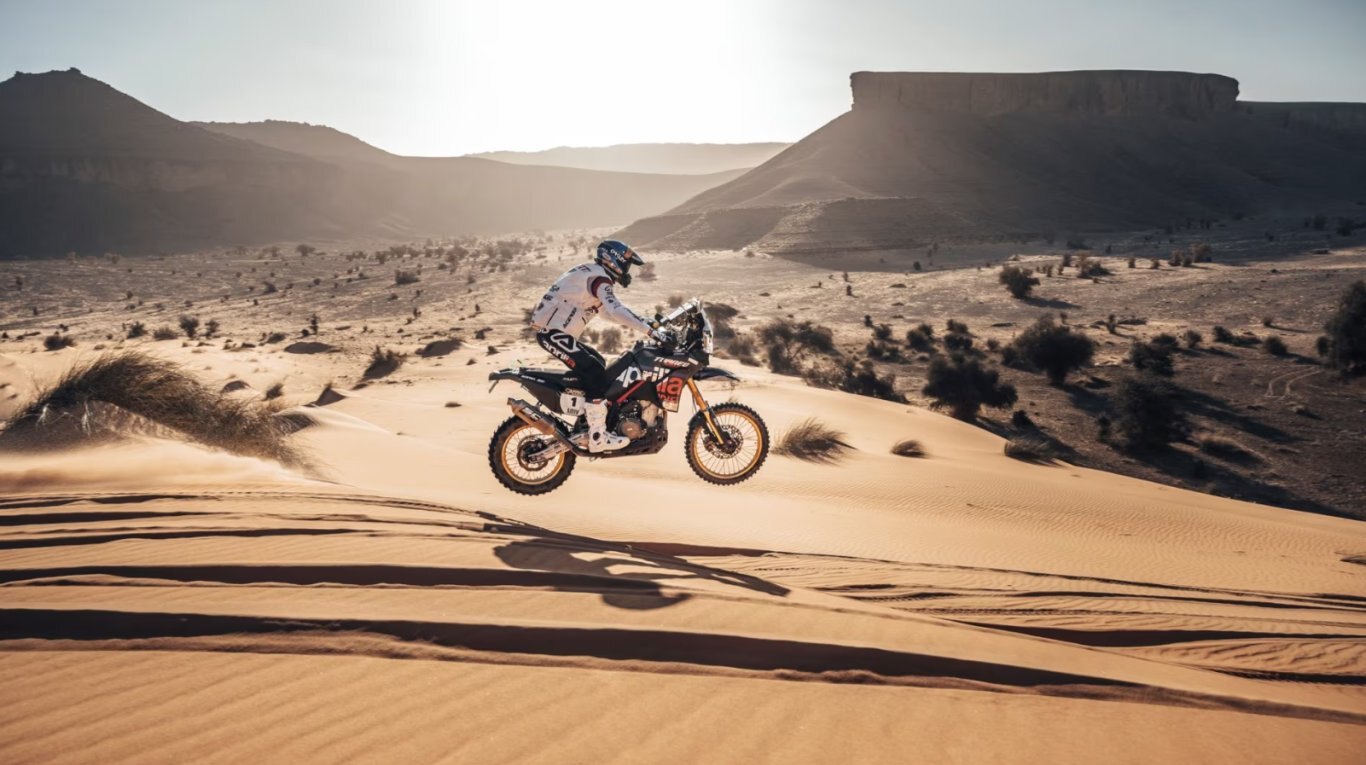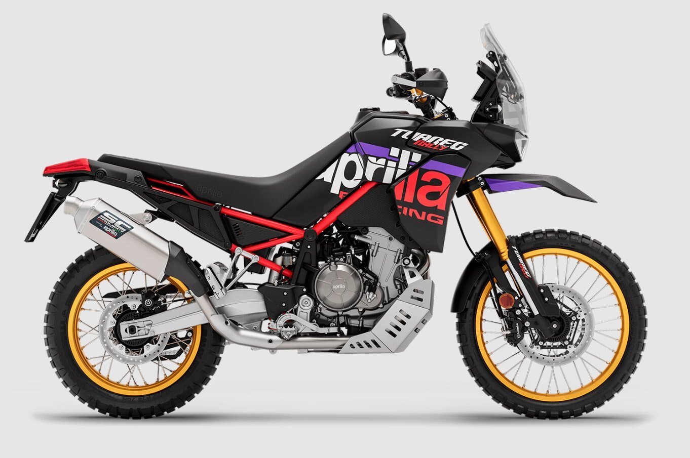 The Aprilia Tuareg Rally offers fast and responsive throttle response, perfect for overcoming obstacles when off-road riding. The SC Project exhaust, designed specifically for the Rally, is made of titanium and features a racing-style end cap with a 60 mm outlet, enhancing performance, sound, and reducing the bike’s overall wet weight to just 199 kg. With four riding modes – Urban, Explore, Off-Road and Individual – you can customise all key APRC electronic parameters depending on whether you’re after maximum riding precision or looking to unleash the bike’s full might and aggression. |