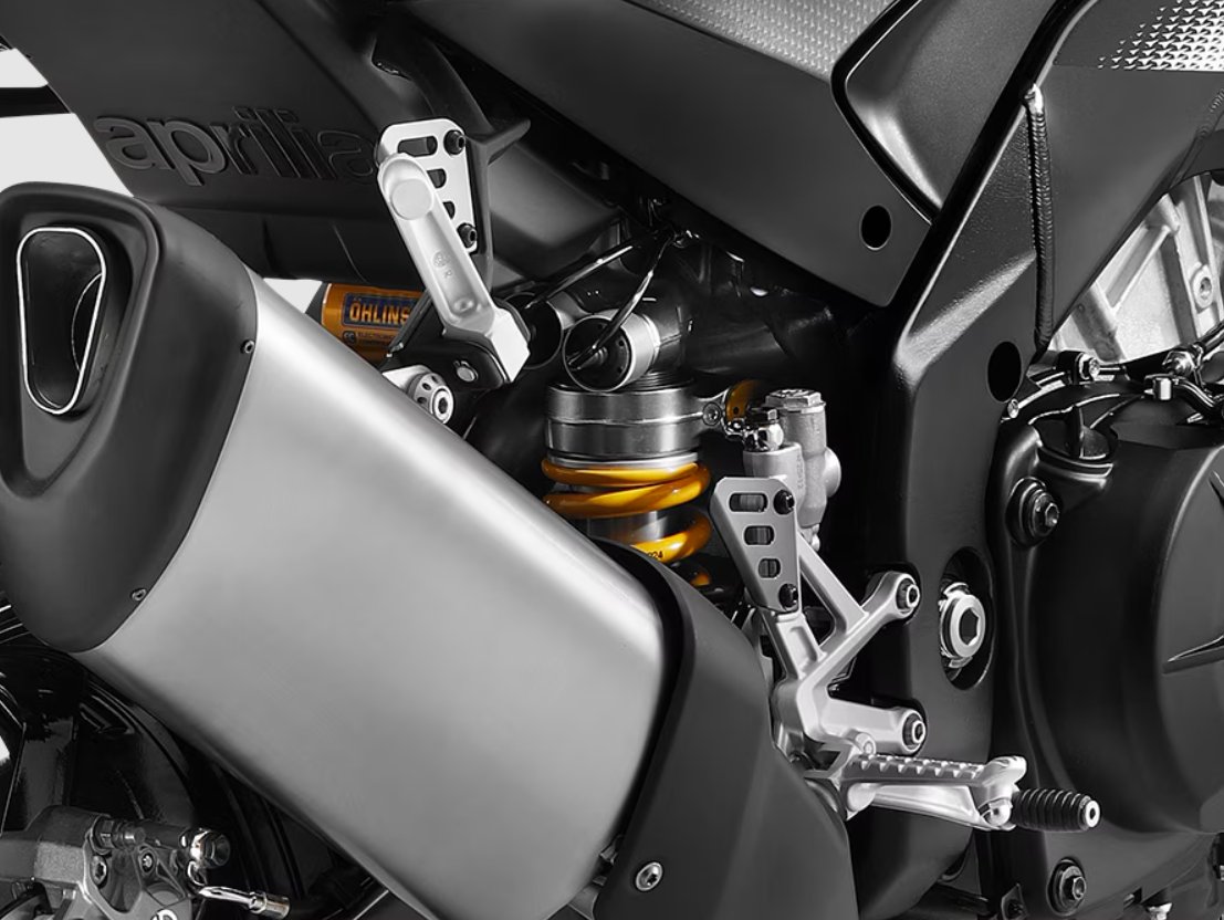 The premium Öhlins Smart EC 2.0 suspension package includes an adjustable inverted titanium nitride-coated fork and 120 mm of travel, a mono shock absorber with 130 mm of travel and a steering damper. The Aprilia Tuono V4 Factory’s suspension adjusts hydraulic calibration in real time based on riding conditions and style. Everything is managed through the a-PRC suite with ADC (Aprilia Damping Control), which can be set to active or manual mode, seamlessly integrating with the Riding Modes and the Corner By Corner accessory. The ADC system activation is available via an in-app purchase of the Suspension Pack. |