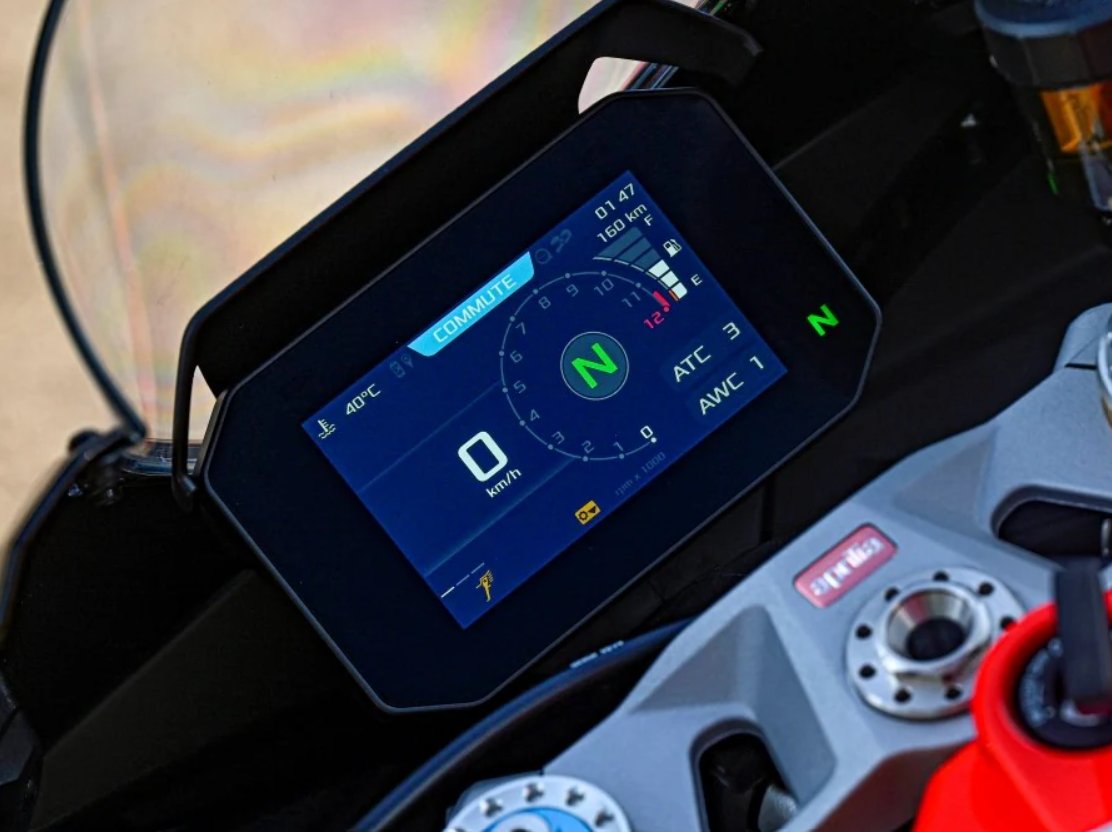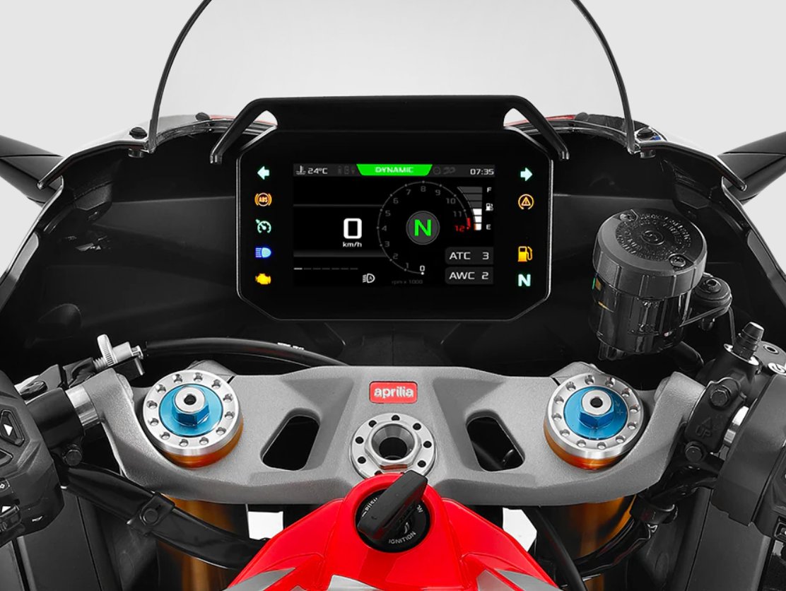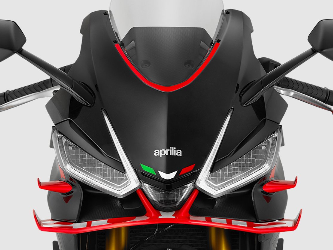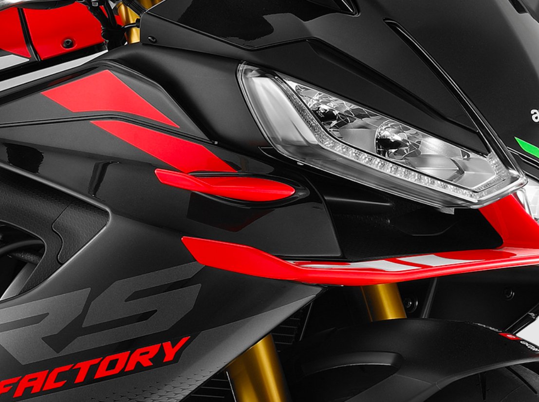 The competitive spirit of the Aprilia RS 660 Factory is reflected in the contrasting colours of its two-tone seat and Factory graphics. On the road, black wraps around the sides to dominate the look, but when the lean angle gets serious, red takes over, standing out in the upper view and revealing the Aprilia logo imprinted on the large front wing. The fairing, sculpted with dynamic and modern lines, is enhanced by MotoGP-derived aerodynamics, featuring winglets that improve high-speed stability. Every element is designed to seamlessly combine style and function, embodying the true essence of racing. |