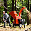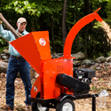 Our most powerful self-feeding chipper, this beast devours branches up to 5.75" in diameter. Electric-starting is standard. Available options include a road-towing kit and an extended discharge chute test. |