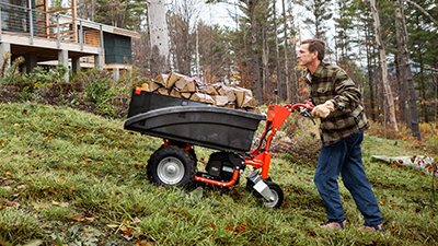 | With 40% greater capacity than our entry level model, the PRO Powerwagon can haul up to 700 lbs with ease. Features a powerful electric-starting engine and a modular cargo bed with removeable end panel. Accepts the optional Flatbed Kit accessory. |