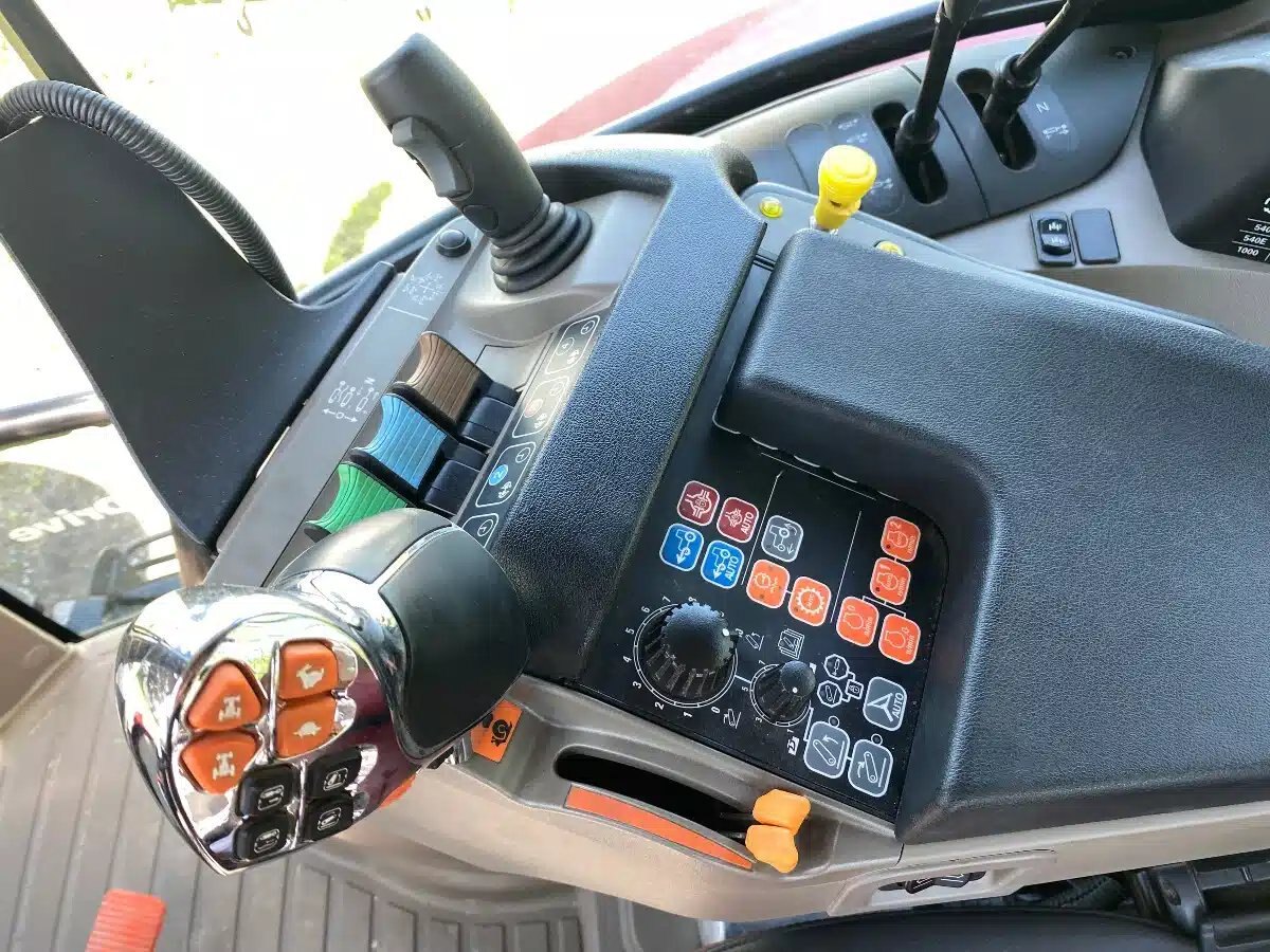 Suspension Cab, ,Loaded, leather steering wheel,Max,EVO leather seat active, Delux radio with blue tooth ,self cancelling turn signal, Auto guidance ready, 2 Telescopic, Heated and remote side view mirrors, pillar enhanced instrument cluster, High spec hood light ,14 Led Led High out put roof lights,200 amp alternator, reversable cooling fan, Wet Diff and 4wd clutch, Grid heater, HD battery, 40 KPH CVT, Dynamic front fenders, loader ready, 3EH mmv Joystick, front three point hitch, ISO CL3 + 9 pin + speed,