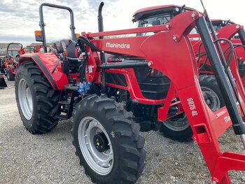 Power shuttle reverser, 71 Eng Hp, 15F & 15 R Transmission, 2 speed PTO (eco mode), Independent PTO (Live PTO), 11.1 GPM Implement pump, Total hydraulic flow 15.7 GPM, 3-point hitch Cat 1 and 2 3 point hitch, 3 pound lift capacity 4840 lbs, 140 Amp Alternator, Lower link latch for easy hook up, Length without loader 146.9 Inches, Width 82.68 Inches, Overall Height 115 Inches, Wheel Base 87.4 inches, Ground Clearance 14.1 inch, Turning radius 12.4 Inch, Weight without loader 7495 lbs, Ag Tire Size 11.2 X 24 16.9 X30 , Or Industrials 43 x 13-20 18.4-28, LOADER SPECS 78 " bucket, Max lift Height 133 Inches, Lift capacity to Max Height at pins 3550 lbs, Break out force 5000 lbs, Weight 1880 lbs