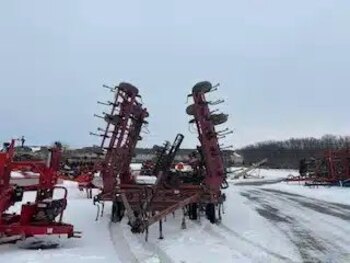 40 Ft finger harrow with S-shaped three-tooth tines, with single rolling basket, rocking axles and hydraulic depth adjustment