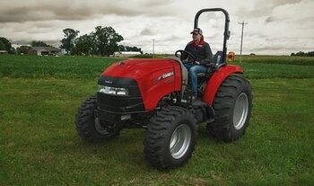 40 Hp, Hydrostatic, dual remotes, Mid mount PTO, with L350A loader, Skid steer Q attach bucket. 2 remotes, Front tires 25x8.5-14 Carlisle, Rear tires 43x16.00-20 Carlisle