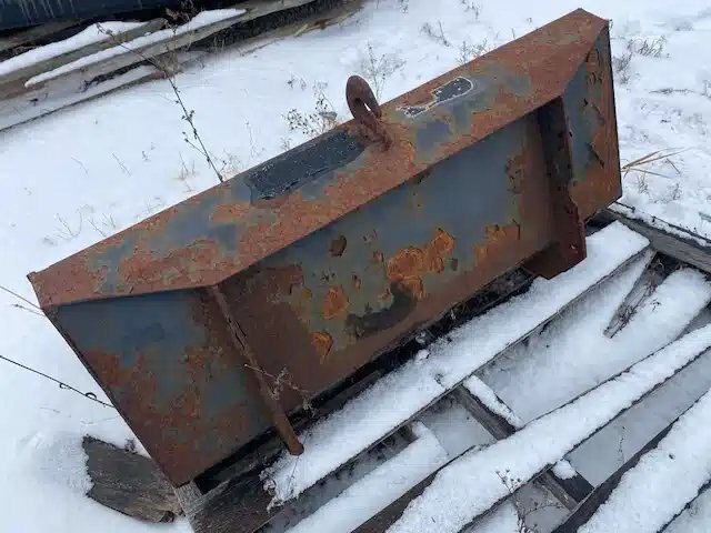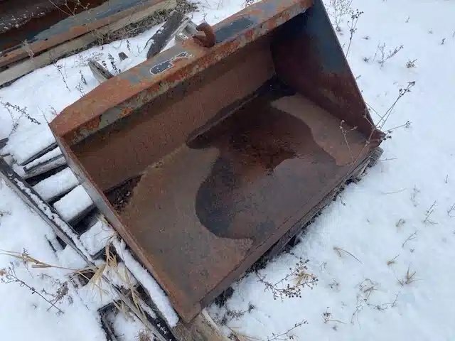 35" wide bucket, 17" high. Various quick-attach accessories. Sale on consignment. No tax.