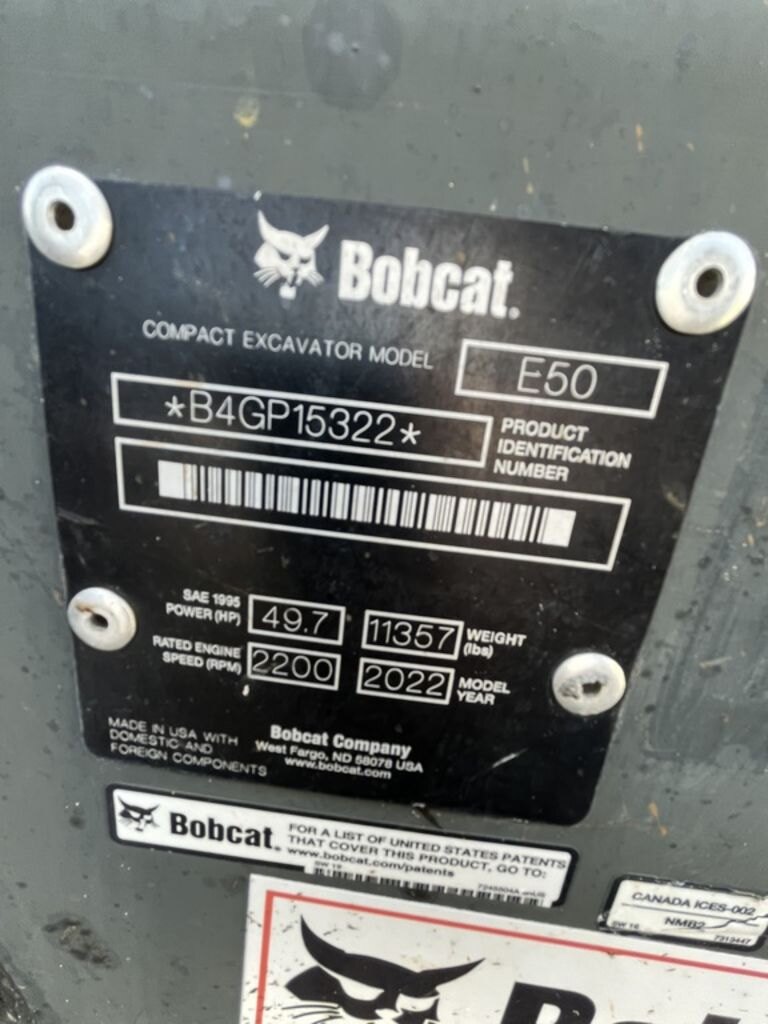 2022 Bobcat Compact Excavators E50 R2-Series Bobcat and we'll respond promptly. If you need immediate assistance, please call us directly at