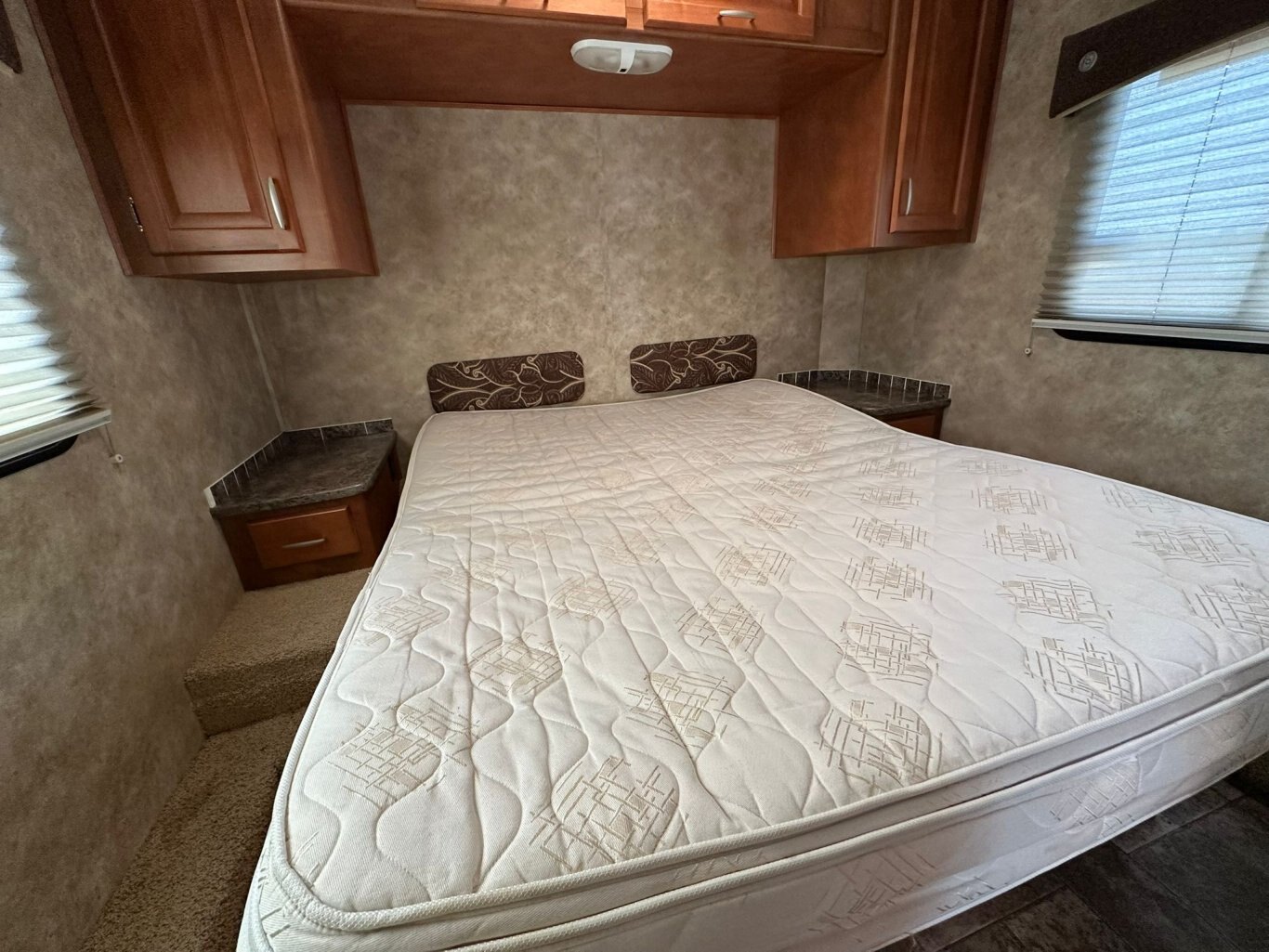- Oversized cab-over bunk (fits 2 adults or 3 kids)