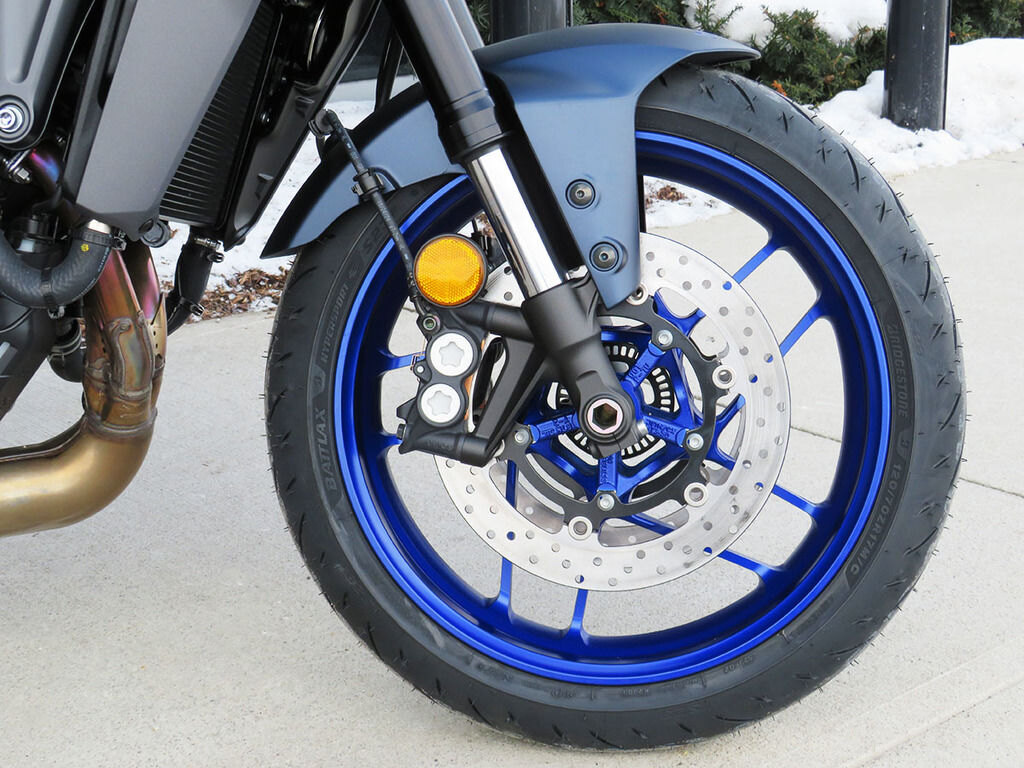 The 889 cc liquid-cooled 3-cylinder produces high-torque out of a lightweight package to produce a powerful yet playful MT that emits a beautiful sound to enhance the feeling of acceleration thanks to its tuned intake and exhaust. The MT-09’s fuel injection system increases efficiency, while optimized gear ratios and its assist-and-slipper clutch match the higher output of the EU5-compliant engine.