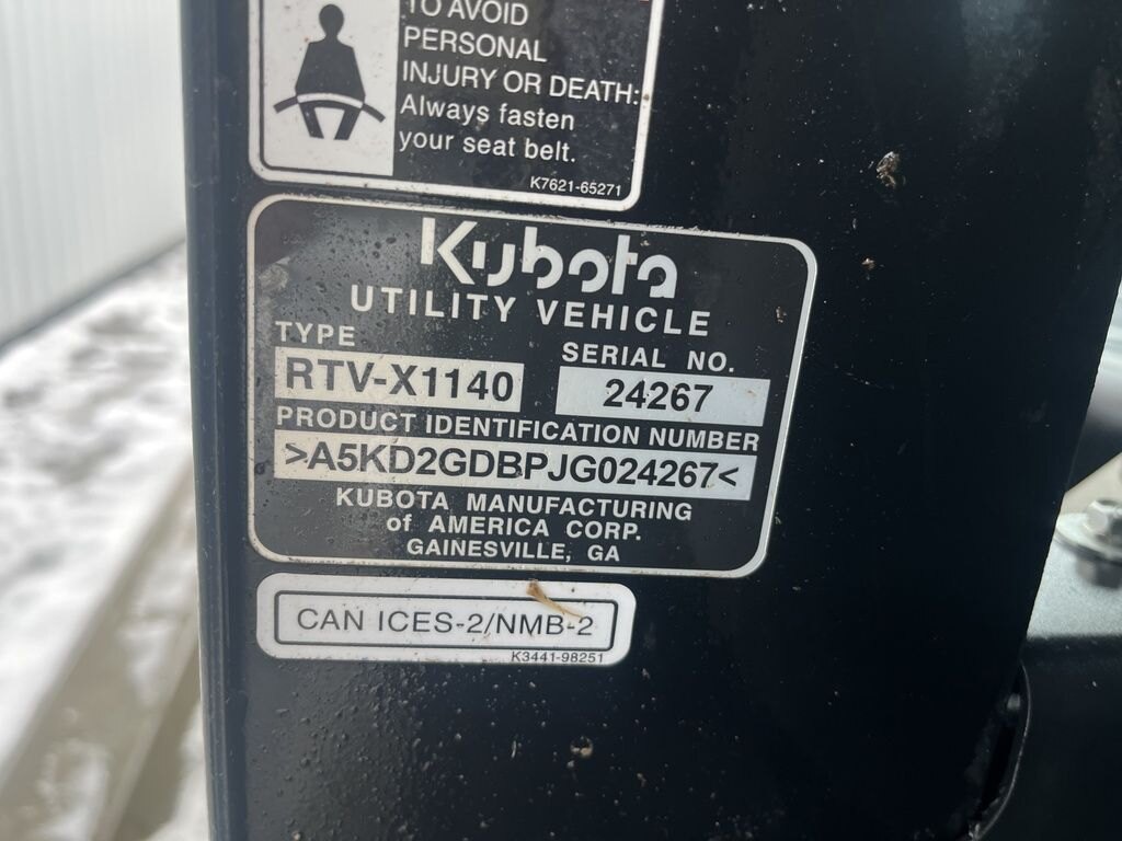 FOR SALE: Kubota RTV Utility Vehicle | Enclosed Cab | Snow Plow | Consignment Cash Sale. Available now on consignment at Galer Equipment, this Kubota RTV is a reliable, work-ready utility vehicle ideal for snow removal, property maintenance, and year-round tasks. Key Details: Make: Kubota | Model: RTV (utility vehicle) | Front-mounted snow plow installed | Hydraulic dump box | Heavy-duty tires | 132.6 Hours | Consignment unit (cash sale). Features: Front snow plow makes this RTV a strong solution for driveways, lots, and property snow clearing. Hydraulic dump box adds versatility for hauling materials, tools, and supplies. Built with Kubota durability for dependable performance in tough working conditions. Condition: Pre-owned consignment unit in good working order. This unit is being sold as a consignment cash sale. Call Galer Equipment today at 905-628-0551 for more information, or visit us at 557 Hwy #5, Dundas, ON — a practical, ready-to-work RTV that adds serious value to any property.