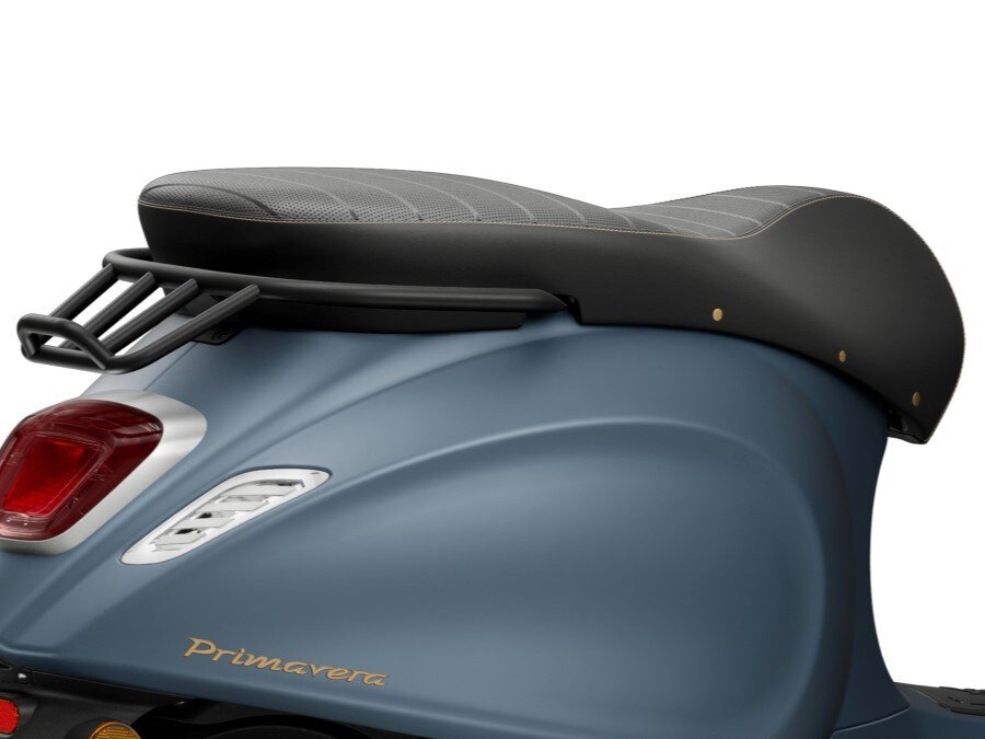 The Vespa Primavera Officina 8 reinterprets Vespa’s heritage with elegance and a contemporary spirit. The intense blue livery is inspired by the industrial machinery found in the historic Officina 8 workshop of the Piaggio factory. A homage to tradition, transformed into a distinctive symbol of strength and identity. The metal details, polished brass rivets and contrast stitching on the saddle are testament to the ingenuity, care and passion that Vespa has forever displayed.