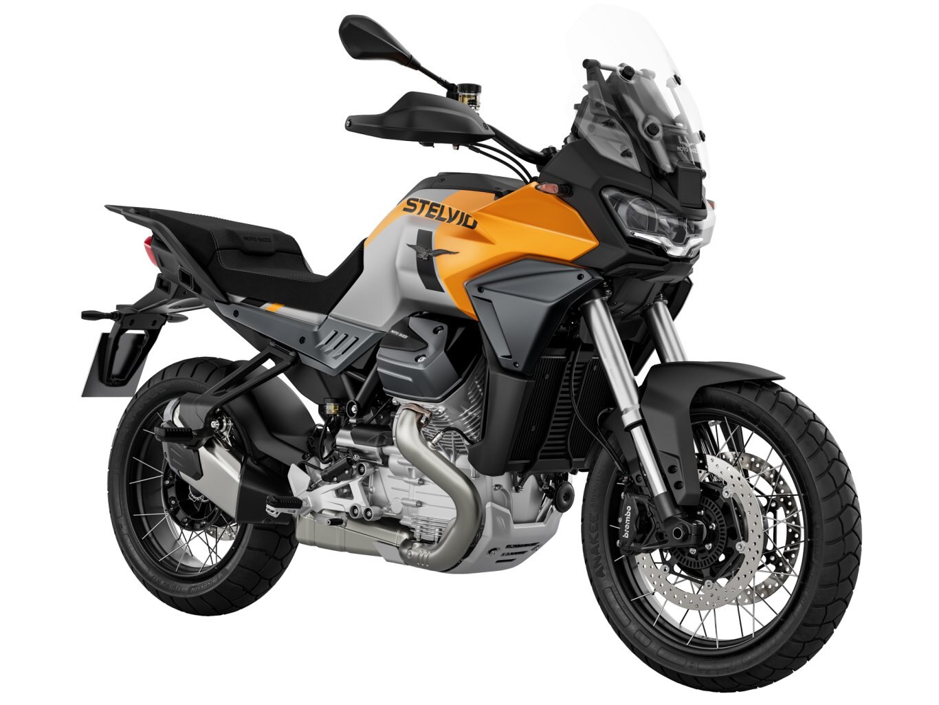 Solid, compact and powerful, the Moto Guzzi heritage can be seen in every detail. From its iconic "Compact Block" V-Twin engine to its unique single-sided swing-arm and its distinctive eagle-shaped DRL, each element is designed to bring into being Stelvio.