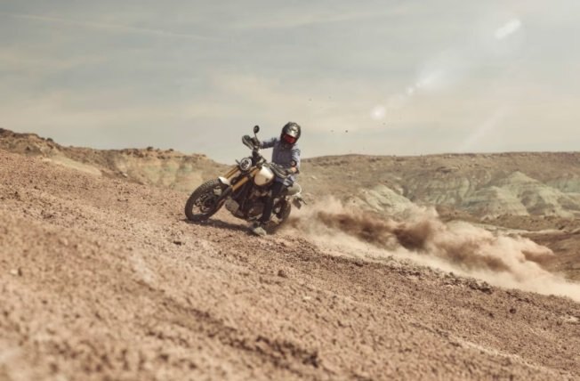 Dedicated Scrambler chassis, long-travel suspension and true all-terrain hardware.