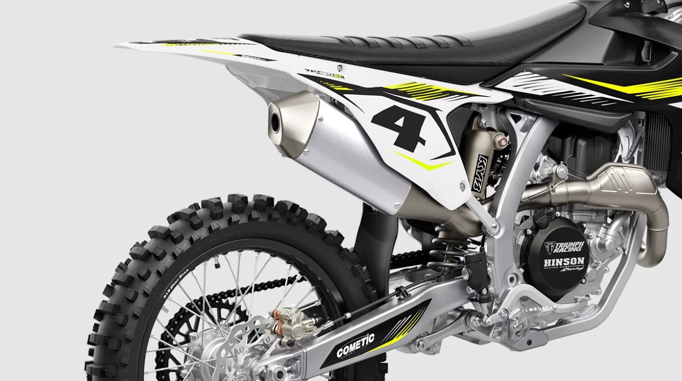 All-new, Triumph’s first 450cc competition powertrain is compact, mass-optimized and built to take the holeshot. Engineering, design, and equipment working in harmony for class-leading power, control, and flexibility. The TF 450-RC is ready to compete at the highest level. |