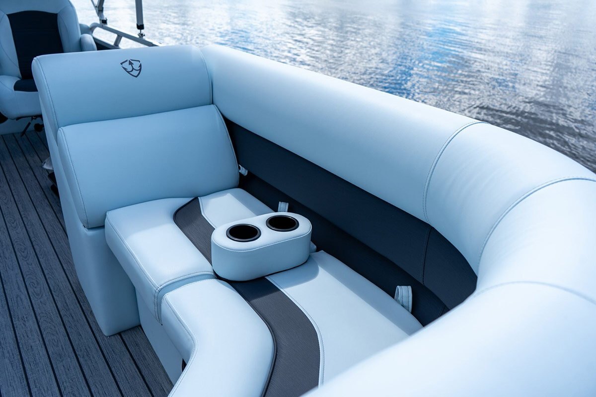 • Large rear bench with "Swing back" backrest that tilts to face forward or backward on the pontoon