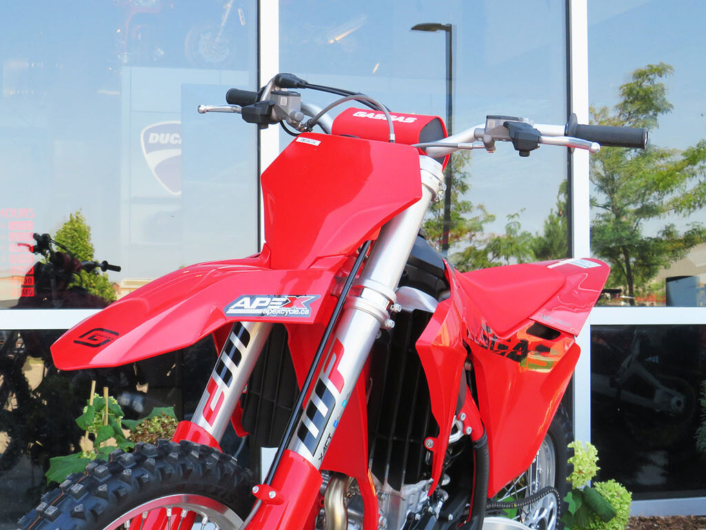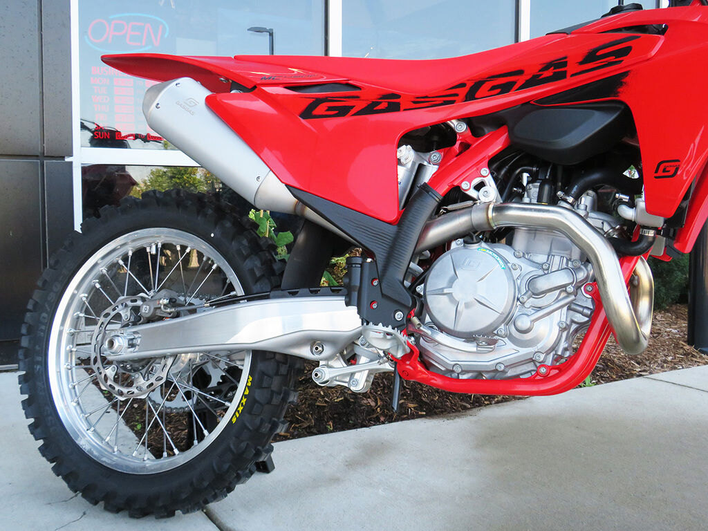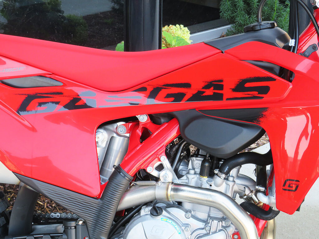 Built with world championship winning pedigree, our awesome MC 450F is, well, awesome! This exceptional dirt bike delivers some serious performance, but thanks to plenty of high-level electronic wizardry, the power is put to the ground in a super rideable way. Put simply, you'll be going fast without realizing. An updated frame for 2025 takes the riding experience to new levels by offering more stability when approaching turns while new suspension settings, a redesigned air intake, bigger footpegs, and a stronger rear brake pedal round out the changes for 2025. One thing that stays the same is the unmistakable, all-red bodywork for a classic, GASGAS look.