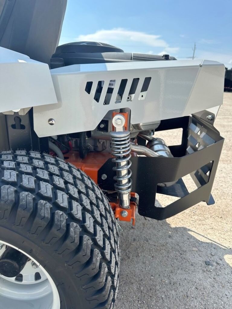Four-wheel suspension with shock absorbers, allowing users to mow faster than the base model.
