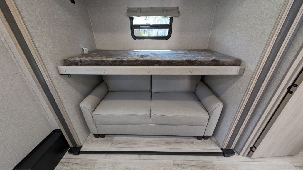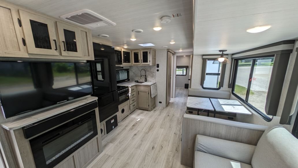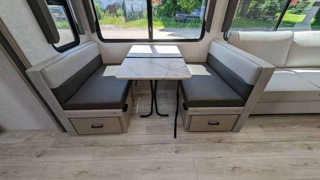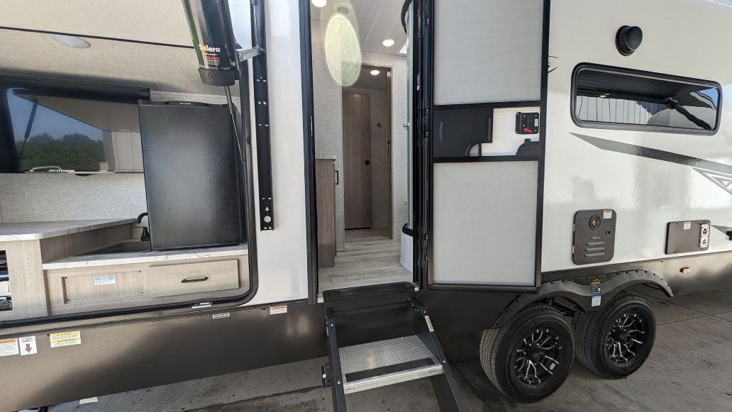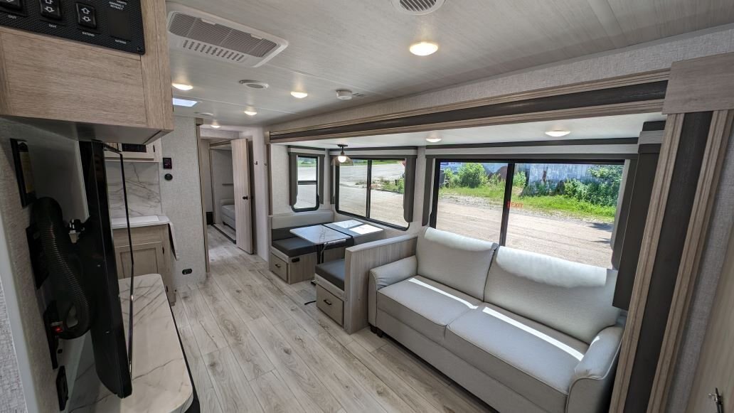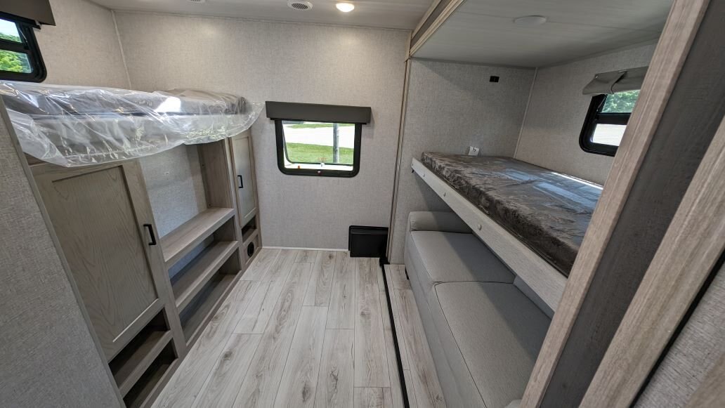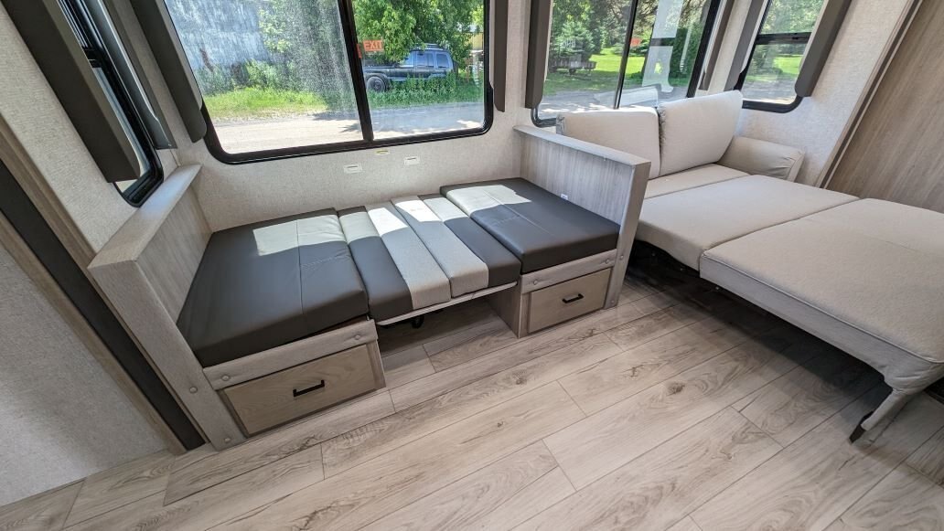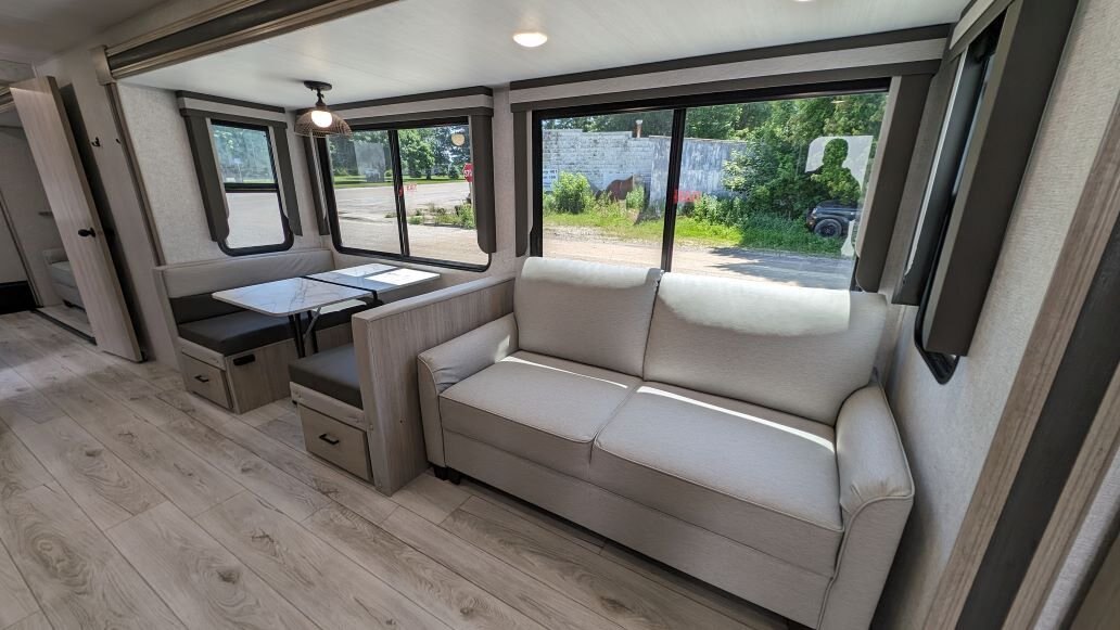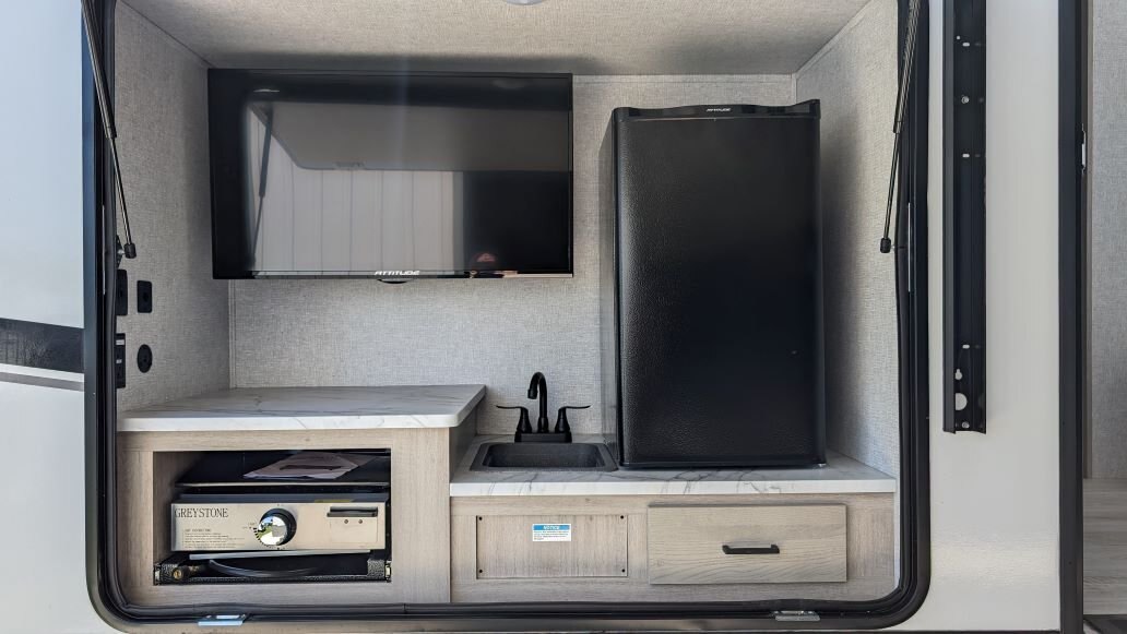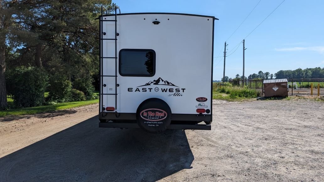 REG: $68,995 BLOWOUT: $49,995 \ DON\'T PAY \'TIL MAY 2026 \ FREE STORAGE UNTIL MAY The 2025 East to West Alta 3150KBH is in stock at In The Hunt Trailers! This beautiful family unit comes equipped with everything you\'ll need for off-grid or campground adventures! Financing available as low as $101/week OAC. Take a look at this rear triple bunk, dual slide floorplan. Dual doors, 1 into the living area and 1 straight into the bathroom. Huge awning. Large outdoor kitchen with oversized fridge, stainless grill, hot and cold water sink and large 40\'\' LED TV. inside you will find a king sized front mattress, sleeper sofa and oversized 48\'\' dinette. Sound bar and another 40 inch TV. 10.7CU FT 12V fridge, 3 burner cooktop and oven, stainless steel sink with beautiful faucet. Counter top extension and even a drawer for the dogs dish. Enter the rear bunk area and you will find a reclining couch opposite the entertainment center. The couch converts to a bunk and there are 2 additional bunks available. Call for more details. Serving Windsor, Chatham-Kent, Elgin County, London Middlesex, Kitchener, Cambridge, Waterloo, Hamilton, Niagara. Conveniently located in Rodney between the shores of Lake Erie and the Blue Waters of Lake Huron.