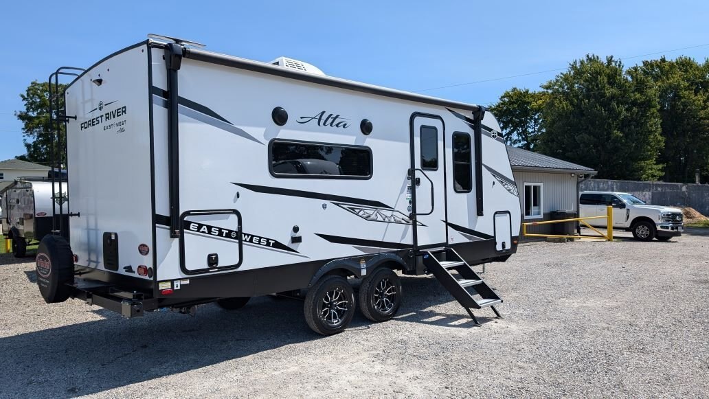 REG: $53,995 SALE: $42,995 \ DON\'T PAY \'TIL MAY 2026 \ FREE STORAGE UNTIL MAY New 2025 East to West Alta 1900MMK are in stock now! This beautiful unit is perfect for the couple that wants all the amenities in a compact unit. Financing available for as low as $87/week OAC. Standard features include: Theatre seating - Extra couch - Murphy bed - 12V Fridge - Microwave - 3 burner gas range - Large countertop - Stainless steel sink - Porcelain toilet - Walk in shower - 32\'\' TV with sound bar and outdoor speakers - Power stabilizer jacks - Aluminum wheels - Solar panel prep. Located at 12711 Furnival Rd. Rodney ON. Serving Windsor, Chatham-Kent, Elgin County, London Middlesex, Kitchener, Cambridge, Waterloo, Hamilton, Niagara. Conveniently located in Rodney between the shores of Lake Erie and the Blue Waters of Lake Huron.