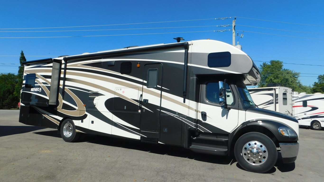 ***DEAL PENDING*** This 2015 Jayco Seneca 37HJ is very clean with a great layout. It has 3 slides, and is equipped with the following options: -CHASSIS: Freightliner M2-106 -ENGINE: Cummins ISB 6.7L 340HP -TRANSMISSION: 6 Speed Automatic -FUEL CAPACITY:(gal) 80 -HITCH RATING:(lbs) 10,000 -PROPANE TANK:(gal) 13.2 -GENERATOR: ONAN 8,000W(2,854 hrs) - Tires DOT 2021 - Length - 38.9 ft. - Width - 8.5 ft. - Height - 13.08 ft. - 3 Power Slideouts - Front & Rear Power Levelling Jacks - 16 ft. Power Awning - 2 x 150 watt Solar Panels w/ 1800 Pur Sine Invertor - Dual 15,000 BTU Air Conditioner - 35,000 BTU Furnace - New Tankless Water Heater - Plenty of Basement Storage - Overhead bunk for extra Sleeping Space - Back up/Side view cameras - Outside entertainment center with LCD TV - Convertible Dinette - Convertible sofa - Fireplace - 3 Burner Stove - 4 Door Refrigerator/Freezer - Microwave Oven - LCD TV in Master - LCD TV in Living room - Bright Shower w/ Skylight - King Bed with storage underneath in Master - Full size Wardrobe in Master - Plenty of Interior Storage - etc. -COME BY AND SEE IT TODAY!