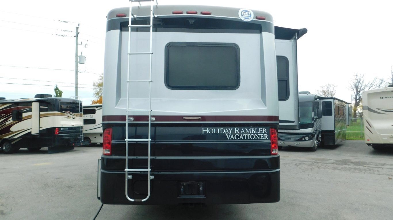 This 2013 Holiday Rambler Vacationer 36SBT has very low kms and shows \'\'extremely\'\' well both inside and out. All the upholstery has been completely upgraded. This coach has 3 slides, and is equipped with the following options: ***THIS IS A CONSIGNMENT SALE*** -CHASSIS: Ford -ENGINE: Triton V10 -TRANSMISSION: 5 Speed Automatic -FUEL CAPACITY:(gal) 80 -HITCH RATING:(lbs) 5,000 -TIRES DOT 2019 -PROPANE TANK:(gal) 16 -GENERATOR: hrs - Length - 36\' 10\'\' - Width - 8.42 ft. - Height - 12.9 ft. - Roof Ladder - 17 ft. Power Retractable Awning - Power Entrance Steps - Dual 13,500 BTU Roof Air Conditioners - 35,000 BTU Furnace - Plenty of Basement Storage - Rear and Side View Cameras - Convertible Dinette - Pantry Storage - Full Size Dual Refrigerator - 3 Burner Stove w/ Oven - Convection Microwave - Bright Shower w/ Skylight - Porcelain Toilet - Queen Size Bed in Master - etc. -COME BY AND SEE IT TODAY!