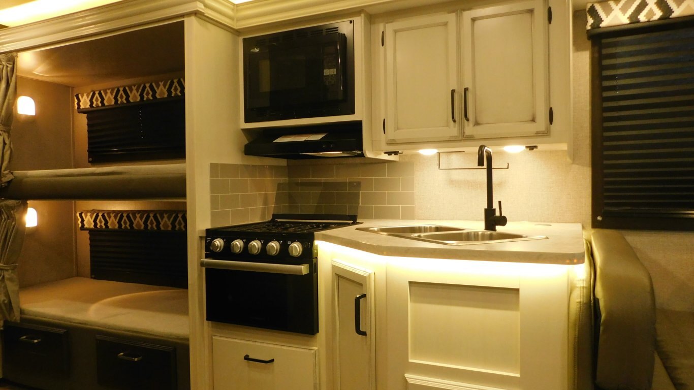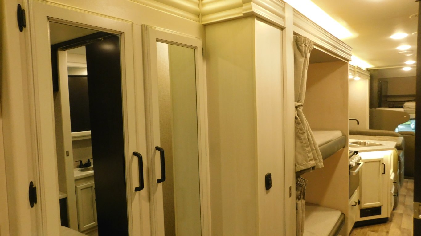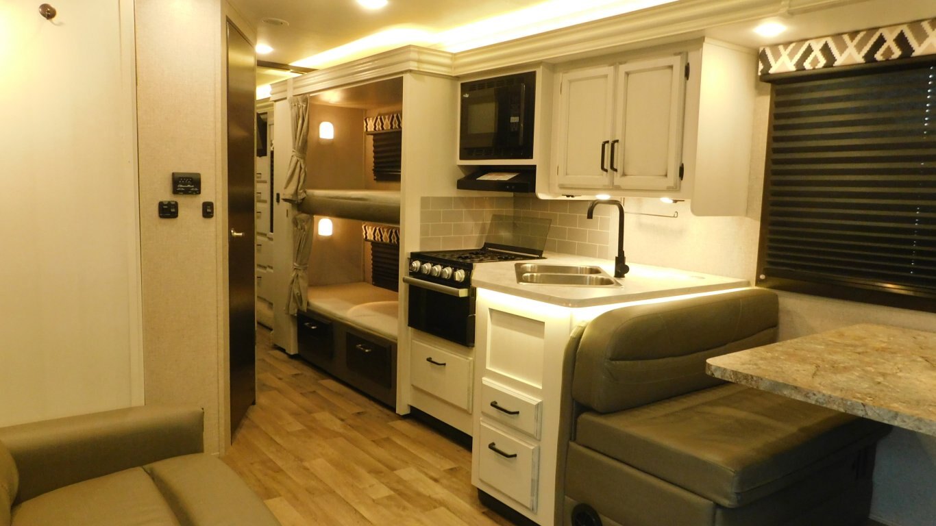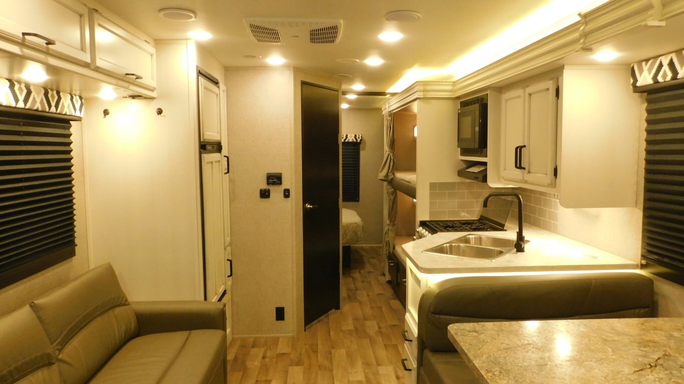 This 2021 Jayco Redhawk 31F Bunkhouse is very clean with a nice light interior and a great family layout. It has 1 full wall slide which offers lots of floor space. It is equipped with the following options: -CHASSIS: Ford E450 -ENGINE: V8 7.3 litre -TRANSMISSION: 6 Speed Automatic torq shift transmission -FUEL CAPACITY:(gal) 40 -HITCH RATING:(lbs) 7,500 -Tires DOT 49/20 -PROPANE TANK:(gal) 9.7 -GENERATOR: ONAN 4000 - Length - 32.5ft. - Width - 8.33 ft. - Height - 12.00 ft. - Jayride Suspension for extra stability - Roof Ladder - 18 ft. Power Retractable Awning - 13,500 BTU Roof Air Conditioner - 20,000 BTU Furnace - Plenty of Basement Storage - Rear View Camera - Bunk Over Cab - Convertible Dinette - Convertible Sofa - Bunks for extra sleeping - Mid Size Dual Refrigerator - 3 Burner Stove w/ Oven - Convection Microwave - Pantry - Bright Shower w/ Skylight - Ensuite access from Master - Queen Size Bed in Master - Full Wardrobe - etc. -COME BY AND SEE IT TODAY!