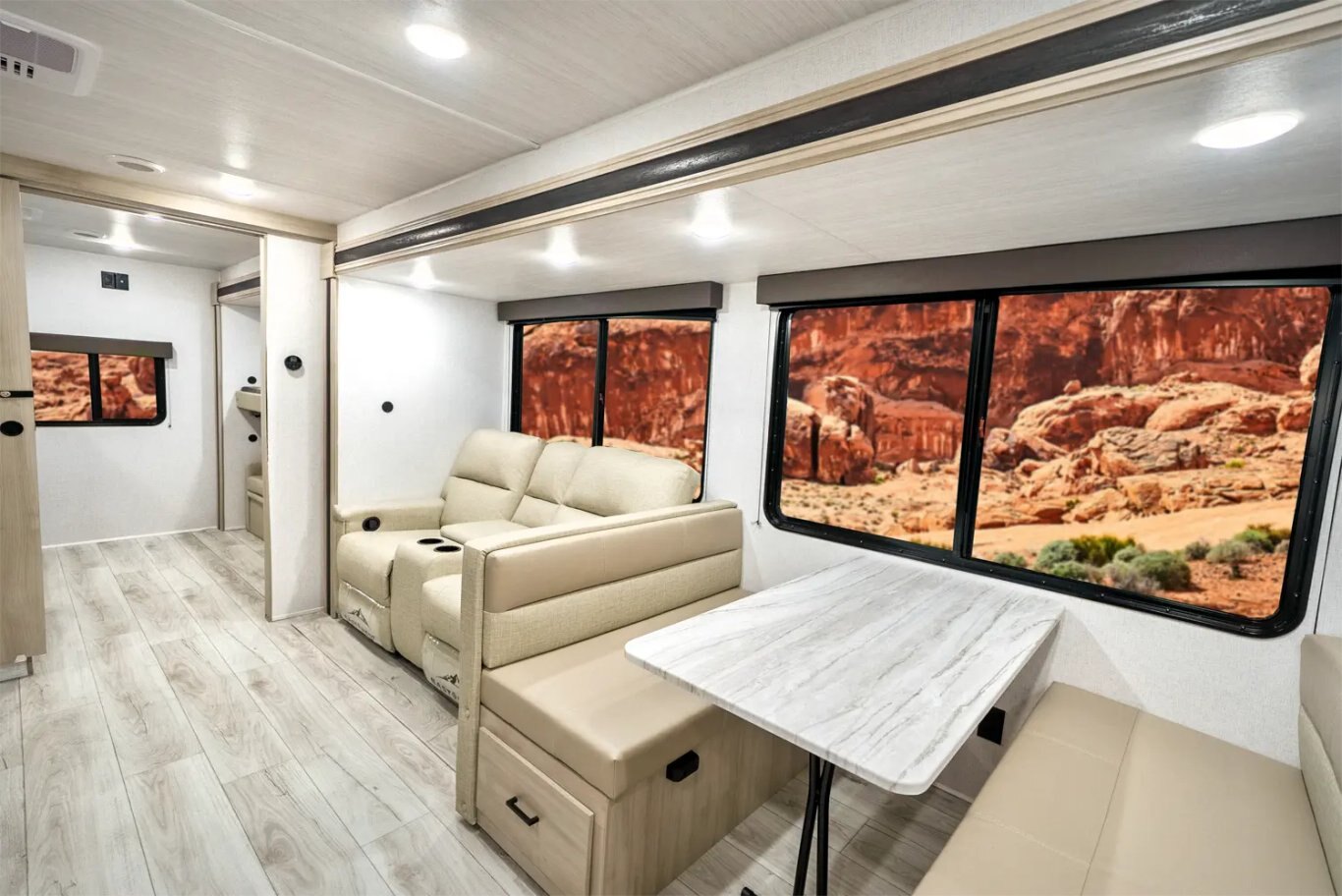 • 48" Dinette with Pullout Storage on Roller Guides (where applicable)