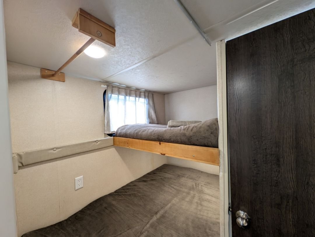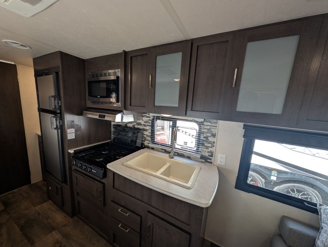 BLOWOUT PRICING: $15,995 The 2019 Salem Cruise Lite 261BH just came in on trade and is a well-maintained unit. This family-friendly bunkhouse is lightweight and easy to tow (approx. 29 ft, 4,794 lbs dry), sleeps 7 comfortably. FINANCING AVAILABLE OAC. FEATURES • Front queen bedroom with dual wardrobes • Rear bunkhouse with double bunks • Sofa and dinette convert to beds • Full kitchen: 3-burner range, microwave, mid-size fridge, double sink, ample cabinetry • Bathroom with tub/shower combo, toilet, vanity & medicine cabinet • 13,500 BTU A/C and propane furnace for year-round comfort • Interior height 78? with vinyl flooring and overhead storage EXTERIOR / CONVENIENCE • 12-ft power awning • Aluminum siding, pass-through storage • Dual propane tanks (40 lbs total) • Front & rear leveling jacks • Roof vents and skylights CAPACITIES Fresh water: 38 gal Grey water: 30 gal Black water: 30 gal Propane: 40 lbs (20lb x 2) Hitch weight: ~434 lbs Payload capacity: ~3,082 lbs CONSTRUCTION Aluminum/wood framing, sheet-metal sidewalls, vinyl flooring throughout. TOWING Suitable for half-ton trucks or large SUVs with 5,000\ lbs towing capacity.