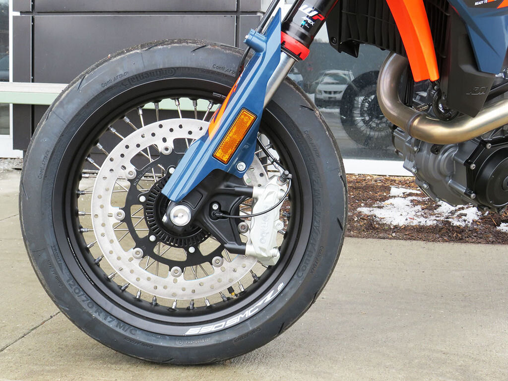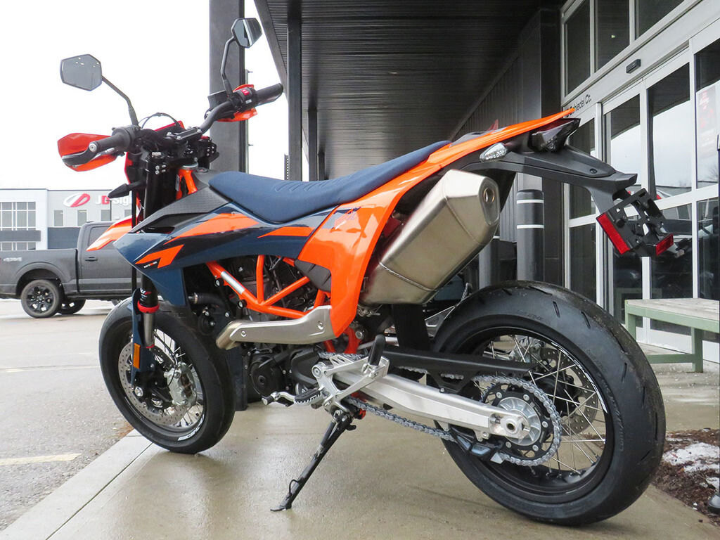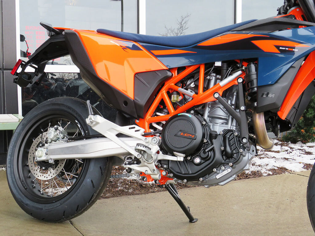 The KTM 690 SMC R obliterates the competition, proving itself as the undisputed king of its class. Providing the rider with agile handling, best-in-class power, and rider focused ergonomics, the KTM 690 SMC R embodies the notion of READY TO RACE with 110% dedication to its craft. From sliding into corners, power-wheelies over crests, and hard blasts through tight mountain passes, the King of supermoto for the street is on the attack.