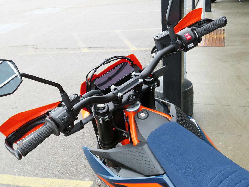 HIT THE ROADEvery surface the rider touches on the KTM 690 SMC R - from the tank spoilers to the cable routing near the footpegs - has been optimized for maximum performance. Ergonomically, riders have complete freedom of movement without any fear of hooking boots or uncomfortable riding positions when getting knees (an elbows) down.