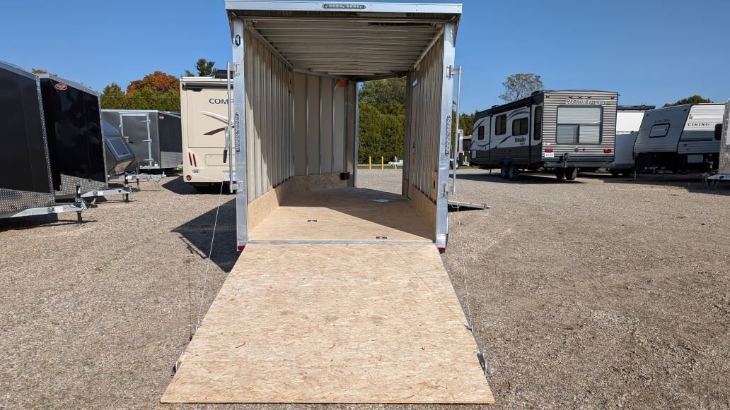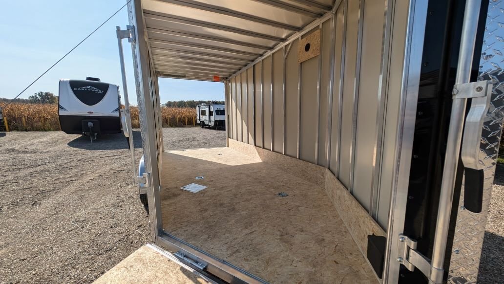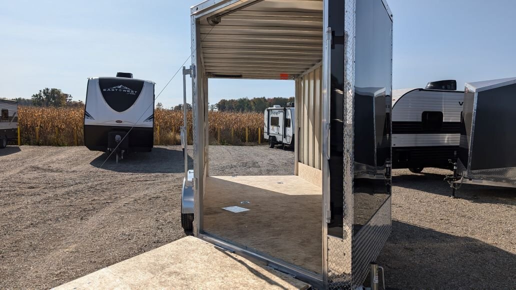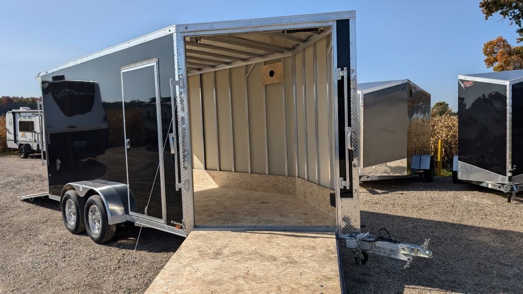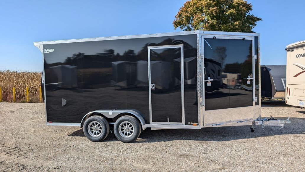 The 2025 Lightning 7x19 Aluminum Snowmobile Trailer just landed at In The Hunt Trailers in time for this year\'s snowmobile season. This purpose built unit is the ultimate sled hauler that has everything you need at an affordable price. Financing available for as low as $45/week OAC. This unit features the following options: - Black Exterior - POLYCOR exterior upgrade - 12” of additional interior height - 16” On Centre roof - Snow Promo Package: - 16” On Centre Floors and Sidewalls - Aluminum wheel upgrade - Flush flaps for easy ramp loading - Rear spoiler with (2) loading lights - Aluminum cam-bar lock upgrade Located at 12711 Furnival Rd. Rodney ON. *The price you see is the price you pay plus HST and licensing - NO HIDDEN FEES. We make every effort to ensure accuracy, but occasional errors may occur. Pricing, specifications, and availability can change without notice. We reserve the right to correct any inaccuracies. For the most up-to-date details, please visit our website, email inthehunt@bellnet.ca or give us a call at 519-785-2495.